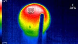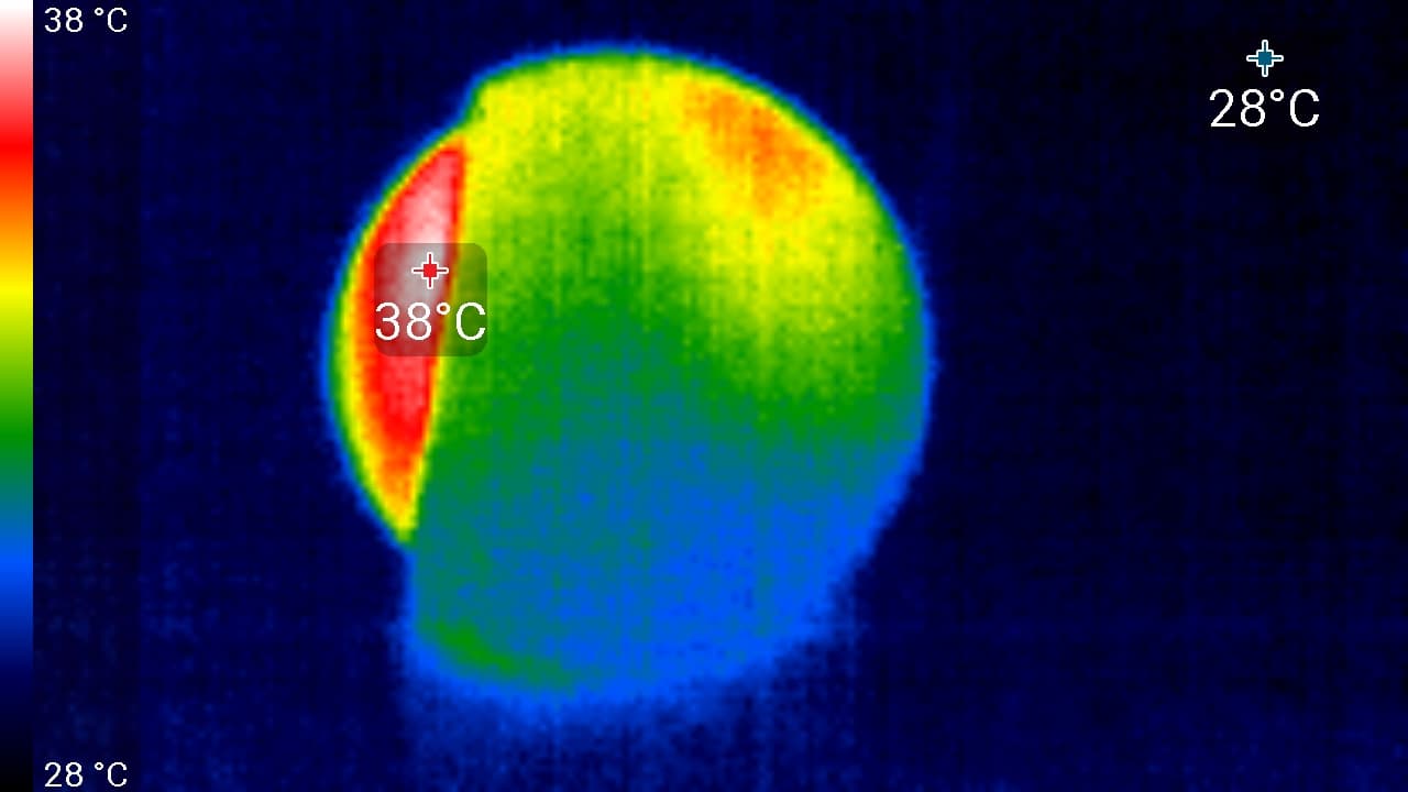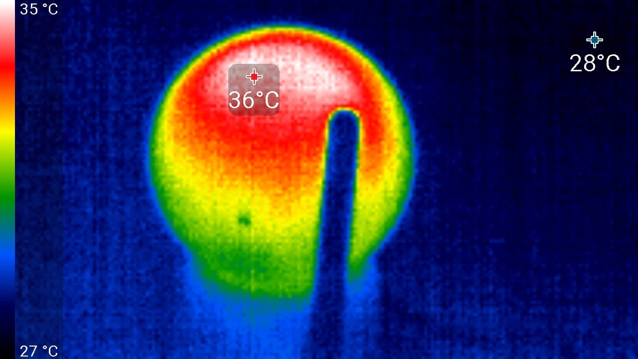 Видно, что основной нагрев происходит в верхней части шарового блока камеры, где находится сенсор и основная управляющая электроника. Эти 41 °C не несут никакой опасности ввиду смехотворности цифры.
