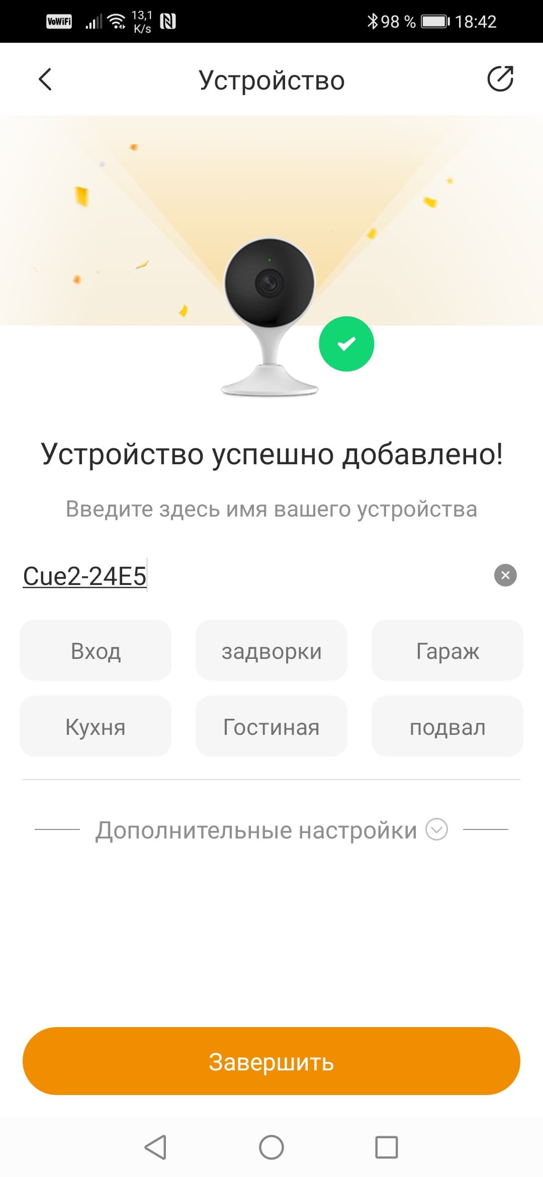 Теперь можно заняться подключением нашей камеры. Существует два способа: сканирование камерой смартфона QR-кода либо ручной ввод серийного номера камеры. К счастью, вся эта информация присутствует как на упаковке, так и на самом приборе. Далее интересное. После того, как по QR-коду или серийному номеру приложение определит тип подключаемой камеры, смартфон требуется поместить поближе к камере. В течение нескольких десятков секунд смартфон будет посылать камере почти неслышную уху высокочастотную трель, в которой зашифрован пароль к Wi-Fi-точке. Минута — и камера подключена.