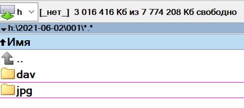 Камера, записывая архив на карту памяти, аккуратно раскладывает контент по папочкам с датой, внутри каждой такой папки находятся еще два каталога: dav и jpg.