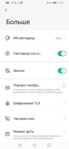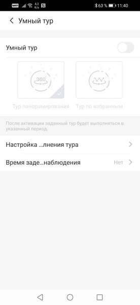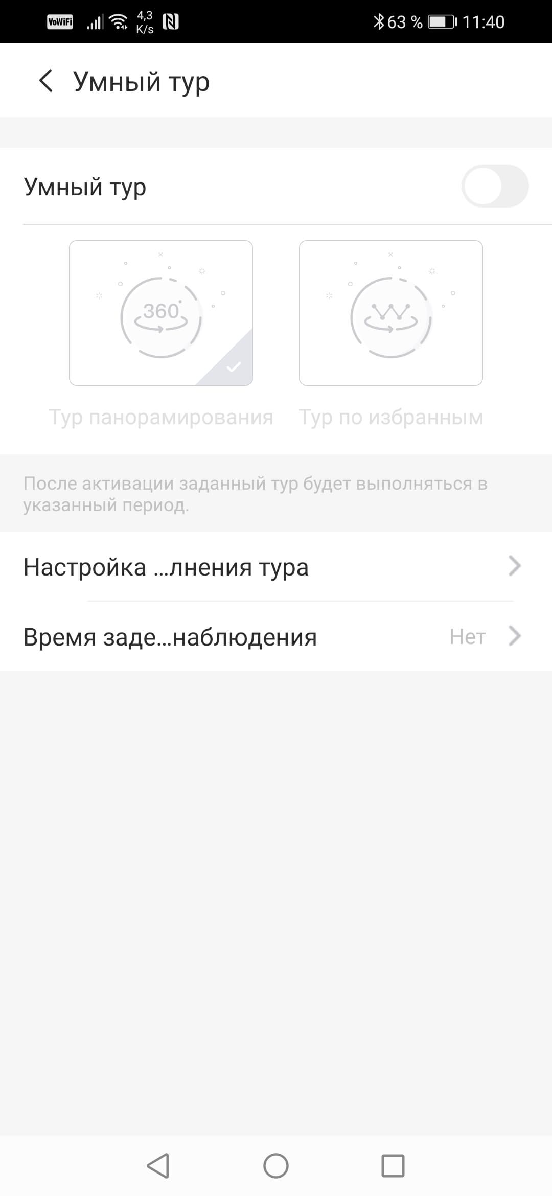 Дополнительные настройки позволяют включить/отключить инфракрасную подсветку и светодиод, сигнализирующий о текущем состоянии камеры (эти источники могут помешать комфортному сну). Также в разделе дополнительных настроек есть возможность переворота изображения, это пригодится, когда камера привинчена к потолку. Еще один интересный пункт называется Умный тур. Он активирует периодические «обходы», или, иначе, патрулирование по заданным точкам, либо регулярные обзоры окружающей обстановки. Также полезно знать такую конструктивную особенность камеры, как режим приватности. Он включается непосредственно на стартовой страничке передвижением ползунка с неудачно переведенным названием «Компенсация затенения». Эта команда включает двигатель, отвечающий за наклон камеры, при этом объектив поднимается вверх до упора, попадая в закрытую для обзора зону.