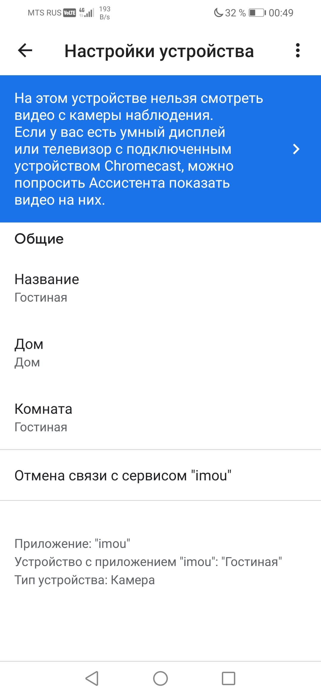 Мы без труда отыскали в списке поддерживаемых Google Home наш бренд Imou, после чего подключенная камера очутилась в списке интегрированных устройств. Правда, оказалось, что Home не способен каким-либо образом задействовать камеру. Скажем, активировать тур или пропищать динамиком. Все, что разрешается — это просмотреть видеопоток с камеры, да и то с помощью сторонней программы Nest и только на телевизоре с поддержкой Chromecast. Возможно, в будущем какие-то функции и появятся, но пока — как-то так.