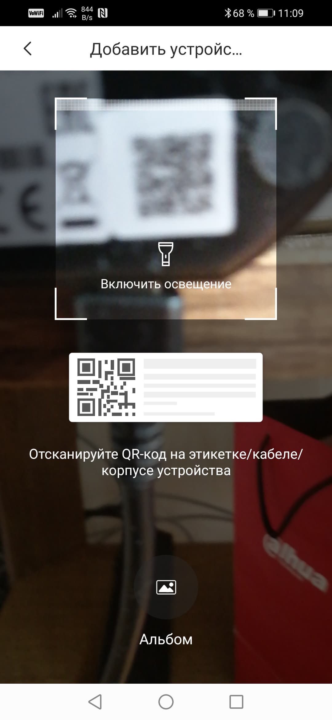 А теперь — сложности, без них никуда. Приложение дает возможность активации камеры лишь двумя способами: сканированием QR-кода либо ручным вводом серийного номера камеры и некоего кода безопасности. Некоего — потому что он отсутствует на наклейке на днище корпуса нашей камеры (такой код имеется не у всех моделей камер и не во всех партиях). Хорошо, с кодом не получилось, остается QR-код. Что может быть проще? Ан нет! Попробуй его сфотографировать телефоном, если размер этого кода меньше квадратного сантиметра! Никак не получается. Ну не может камера нашего смартфона (Honor 8X) сфокусироваться на таком ничтожном расстоянии от фотографируемого объекта. А если отвести камеру смартфона подальше, то QR-код становится неразличимым, слишком мелким. Возможно, смартфоны с более продвинутой зум-оптикой и справятся с таким заданием, но вот наш телефон спасовал.