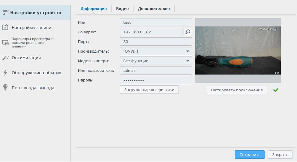 Теперь очень важный для продвинутых пользователей момент. Если камеру подключить к роутеру кабелем LAN и активировать это проводное подключение, то появится возможность задействовать ее с использованием стандарта ONVIF. Например, включить в состав существующей системы наблюдения. Что мы и проделали с помощью NAS Synology.