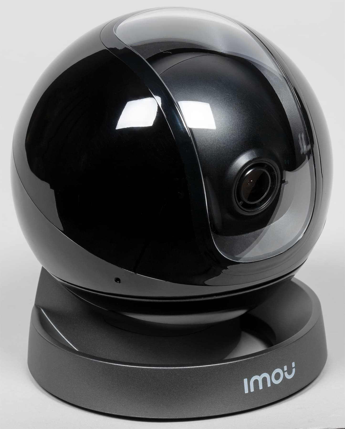 Стандартная для многих комнатных PTZ-камер конструкция: поворотно-наклонный блок, покоящийся на неподвижном основании. В целях защиты от пыли PTZ-механизма и объектива весь блок накрыт прозрачным сферическим куполом.
