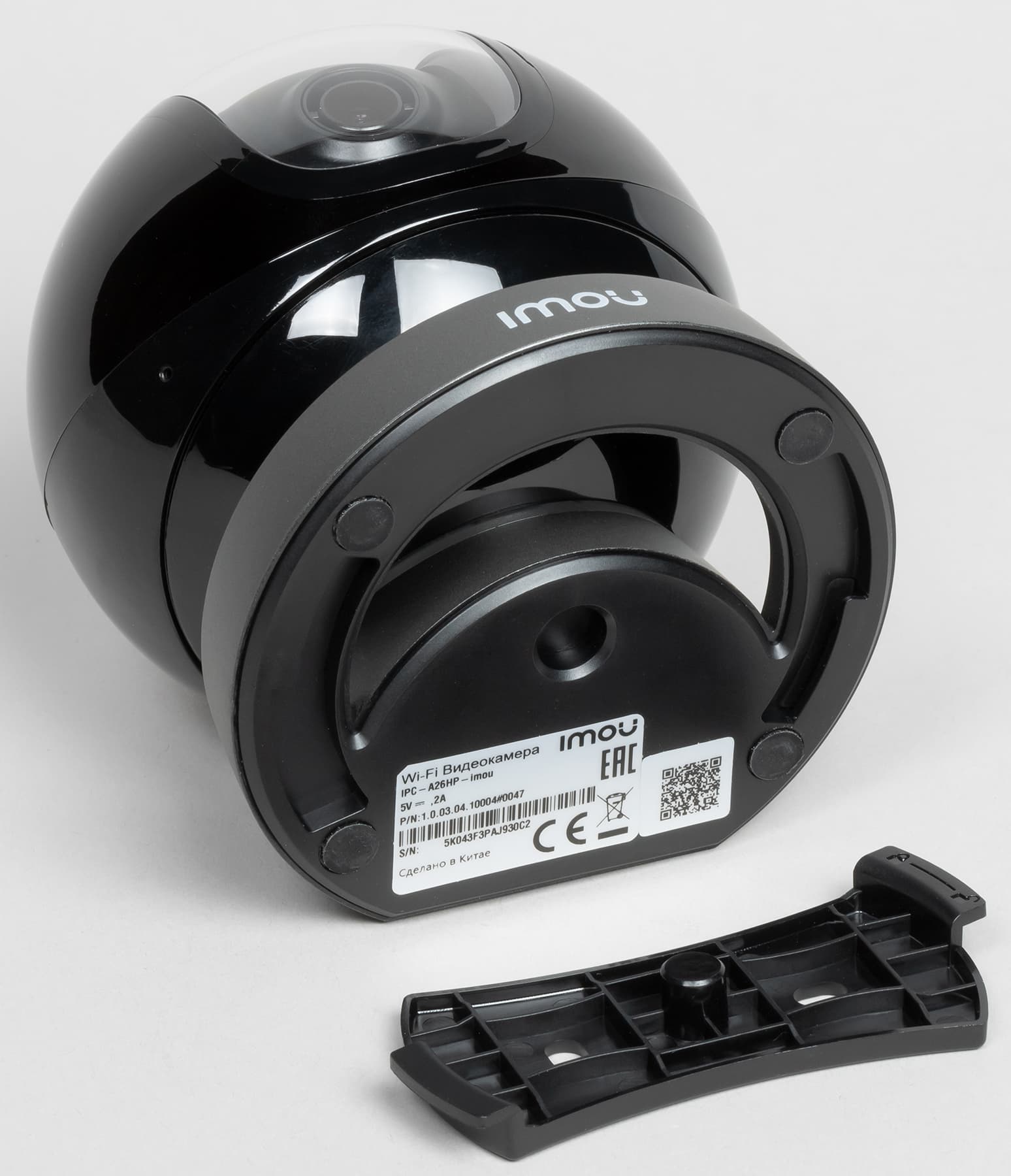 Все интерфейсы камеры вынесены наружу и находятся на задней стороне основания: слот карты памяти, разъем питания Micro-USB, LAN-порт и кнопка сброса к заводским установкам.
