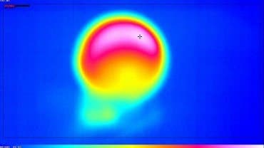 Второй вопрос — нагрев камеры. Ввиду того, что оптико-электронный подвижный блок накрыт прозрачным куполом, не имеющим никаких вентиляционных отверстий (если не считать решетку динамика), можно ожидать заметного нагрева электронной начинки при долговременной работе камеры. Ответ даст только тепловизионная съемка. Которая, к слову, здорово усложняется из-за этого самого прозрачного купола, который рассеивает «видимое» тепло, превращая камеру в призрак. Даже объектив камеры становится неразличим, хотя на первом снимке он «смотрит» точно в тепловизор.