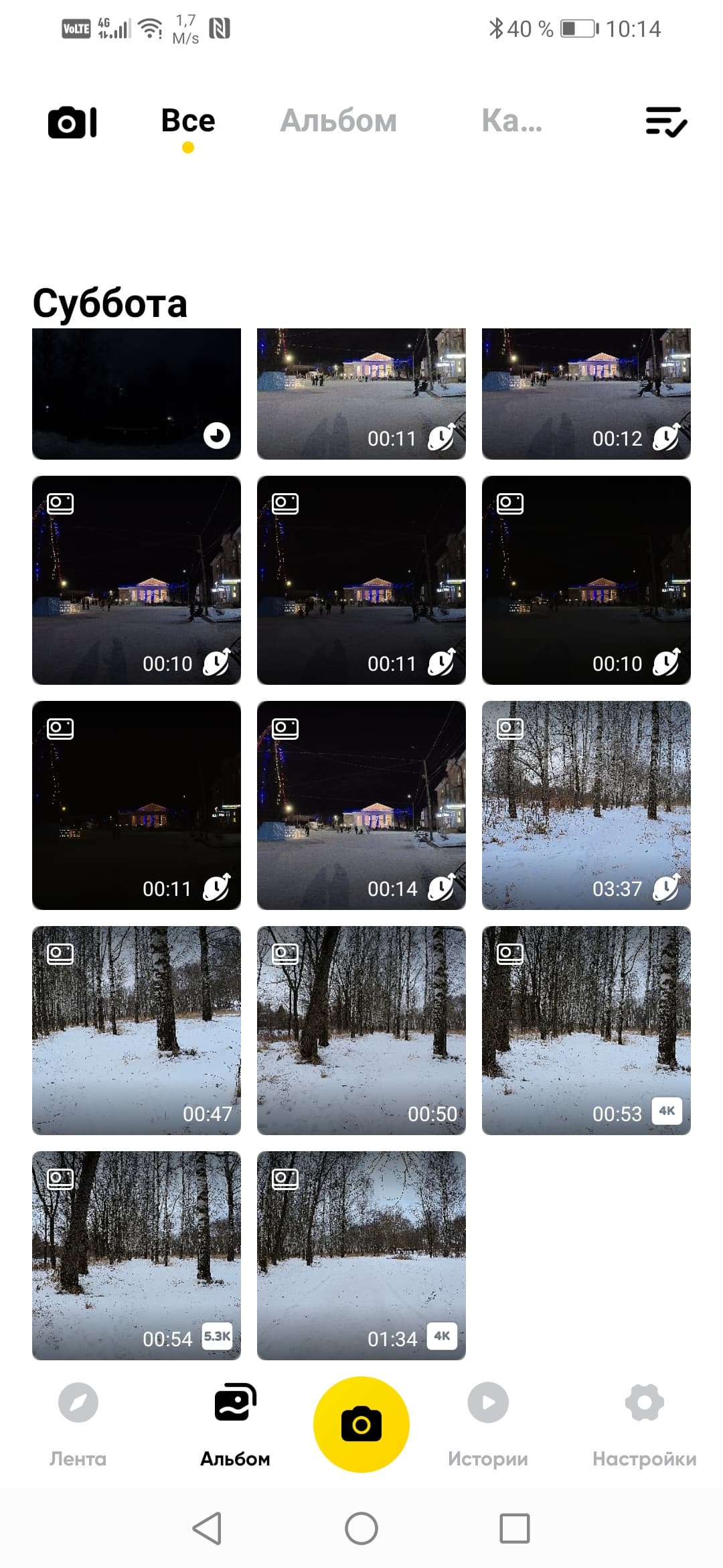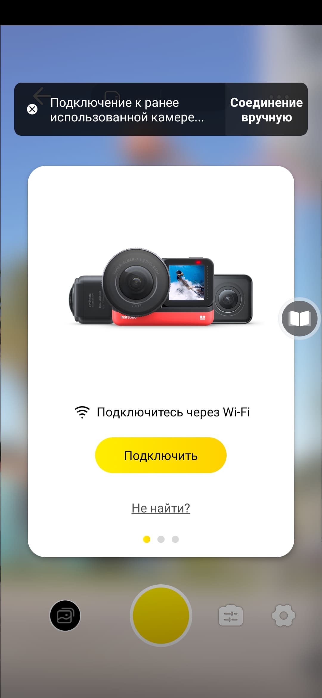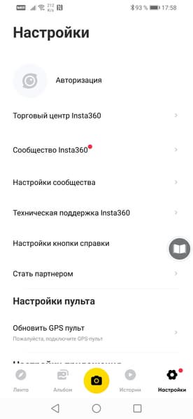 Для связи с камерой используется фирменное приложение Insta360 (for One R, One X2, One X). В нем присутствует много рекламно-обучающих материалов, есть возможность вступить в сообщество фанатов, какие-то академии творчеств и прочие плюшки. Нас же интересует только функциональная часть приложения.