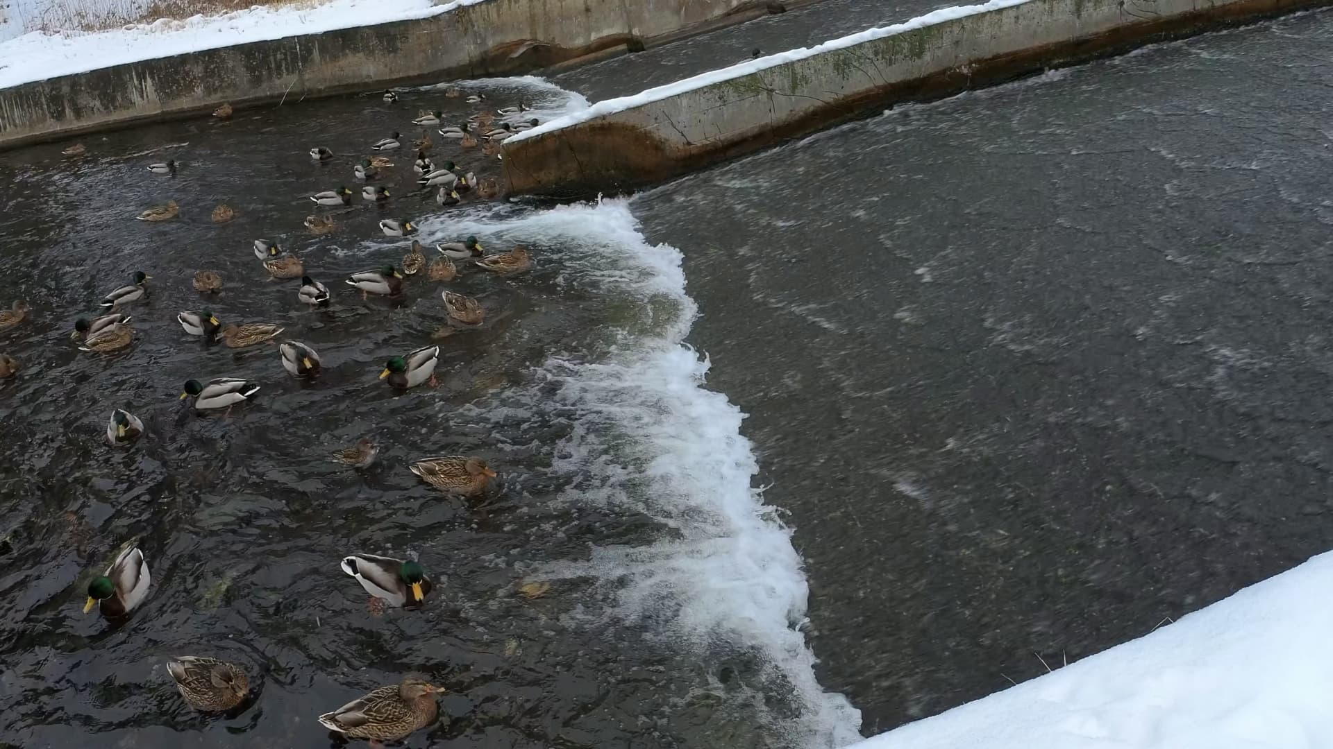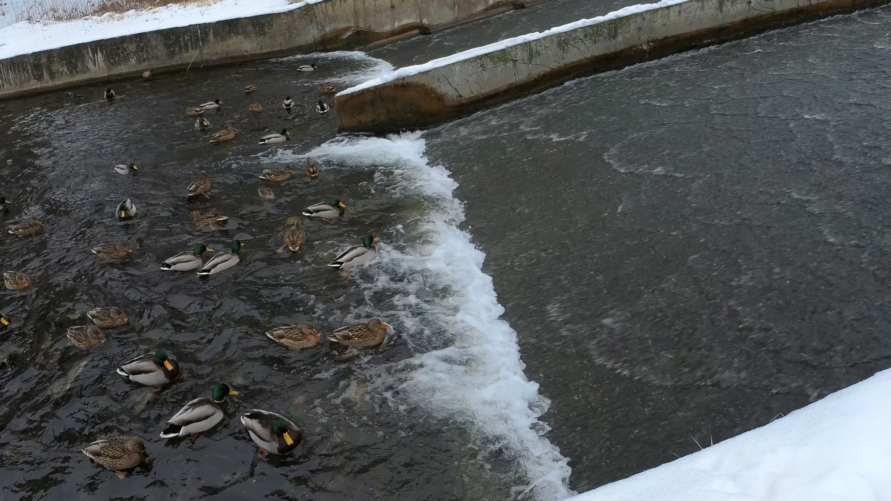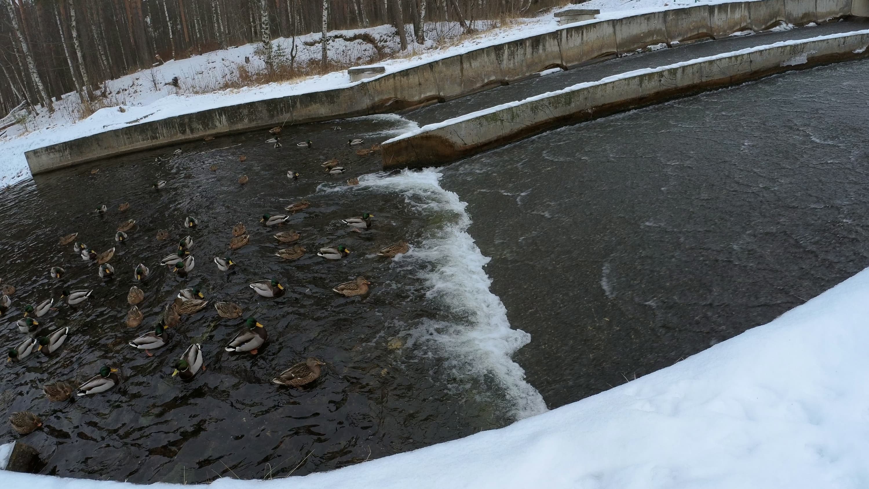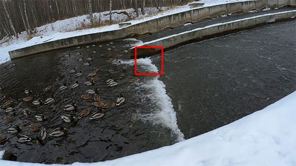 Оценим качество кодирования в разных режимах записи. В этом нам традиционно поможет бурный водный поток. На сей раз — с плавающими утками. Сейчас холодно и голодно, поэтому людей они почти не боятся.