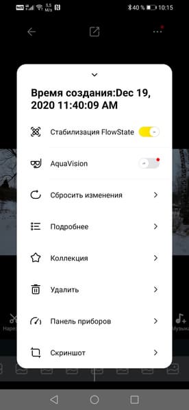 В приложении имеется скромный видеоредактор, позволяющий осуществить простейшую резку выбранного ролика, стабилизацию и экспорт с пользовательскими параметрами.
