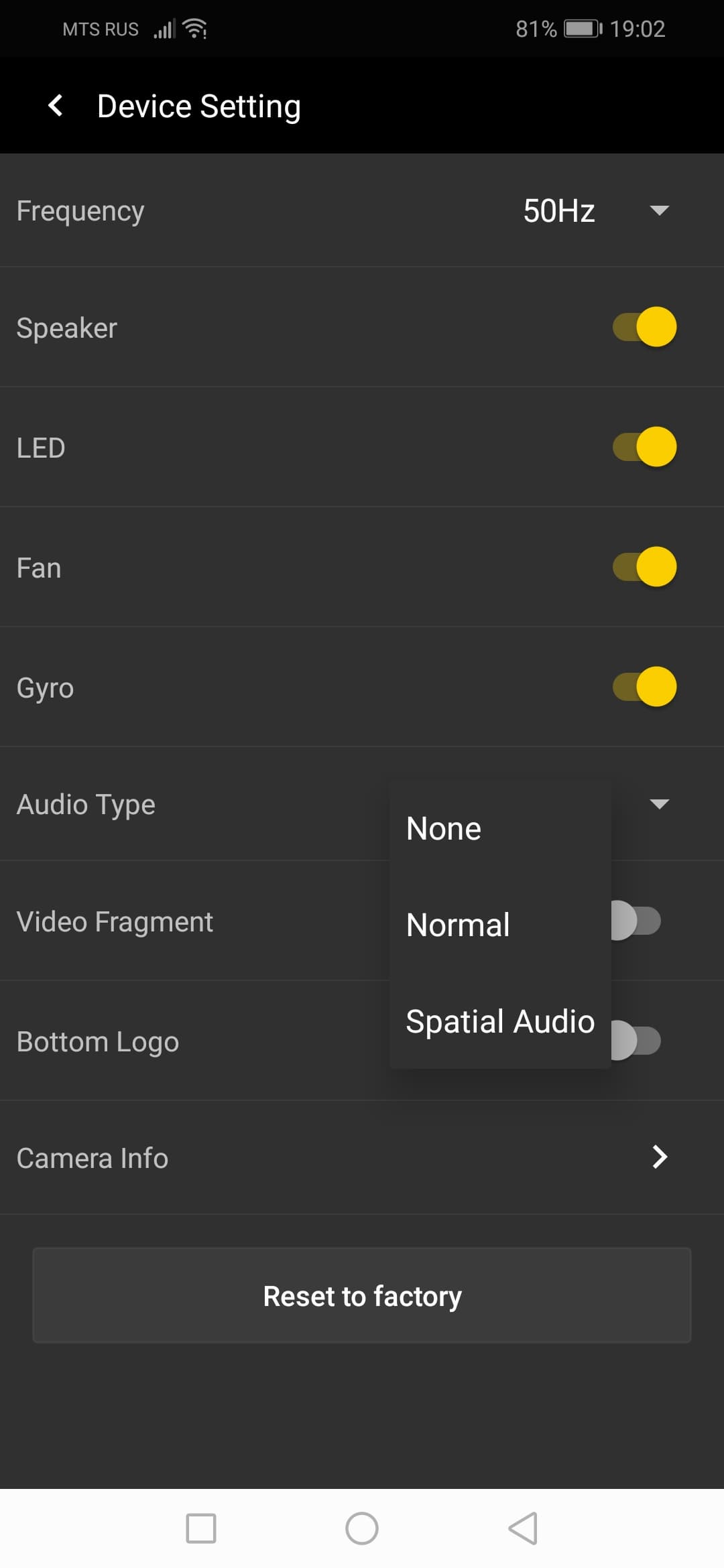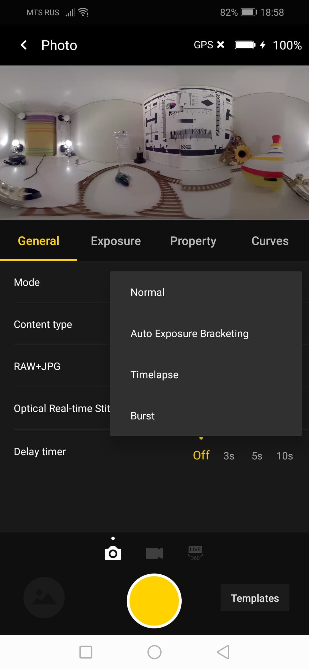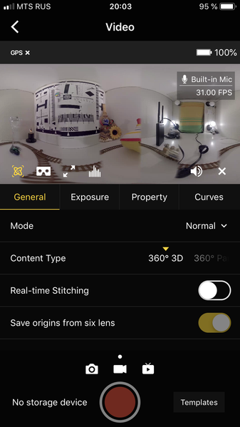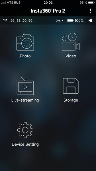 Мобильное приложение было изучено в обзоре предыдущей версии камеры. С тех пор программа почти не изменилась, лишь добавились некоторые пункты, отражающие нововведения в Insta360 Pro 2. Заодно серьезно повысилась устойчивость работы приложения.