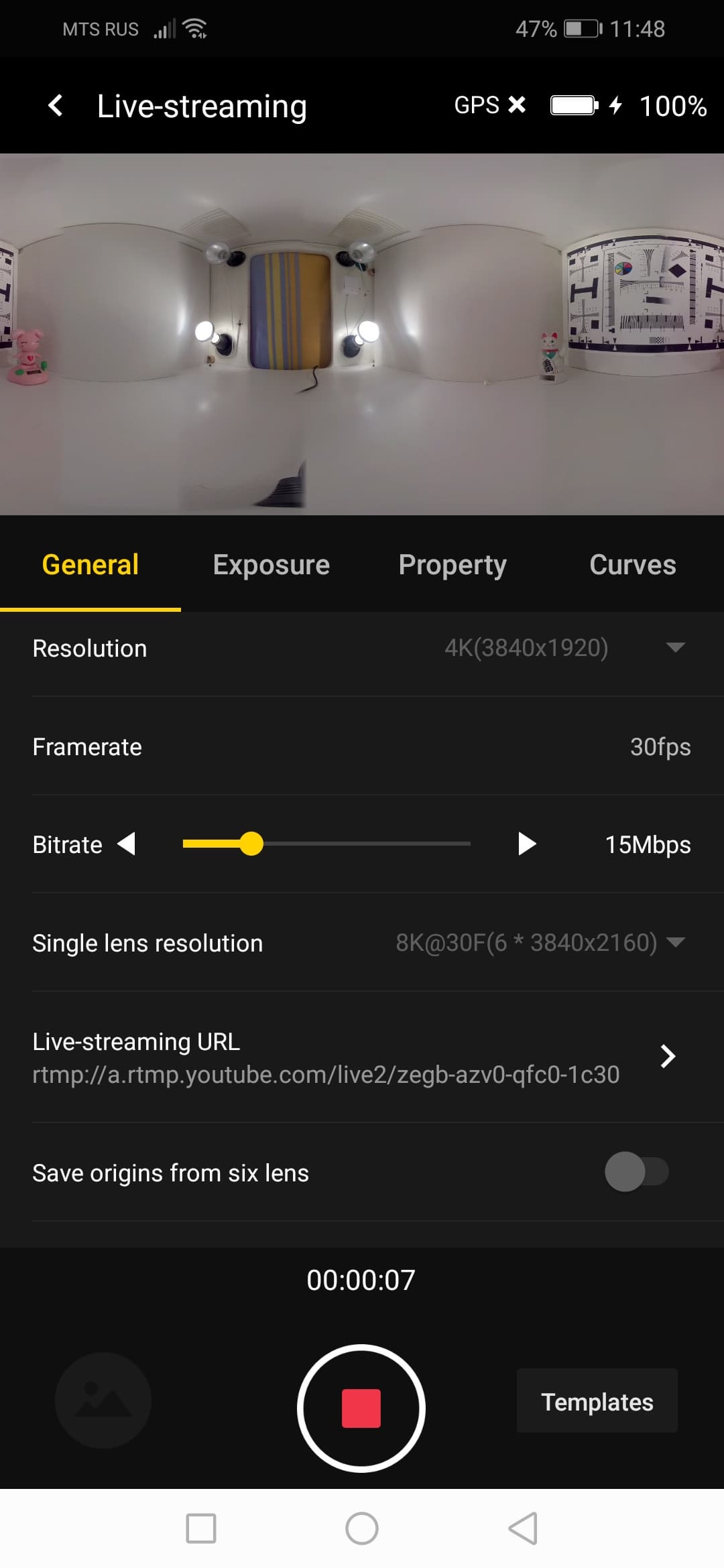 Камера Insta360 Pro 2, как и предыдущая версия аппарата, может использоваться не только для автономной записи с последующей обработкой полученного материала и выгрузкой его на какие-то сервисы. Вторая (не по важности, а по счету) функция камеры — это прямая трансляция. Она возможна как по локальной сети, так и через HDMI-видеовыход. Оба способа трансляции допускают передачу видеопотока с максимальным размером кадра 3840×2160 в любом из представленных в камере режимов, включая 3D.
