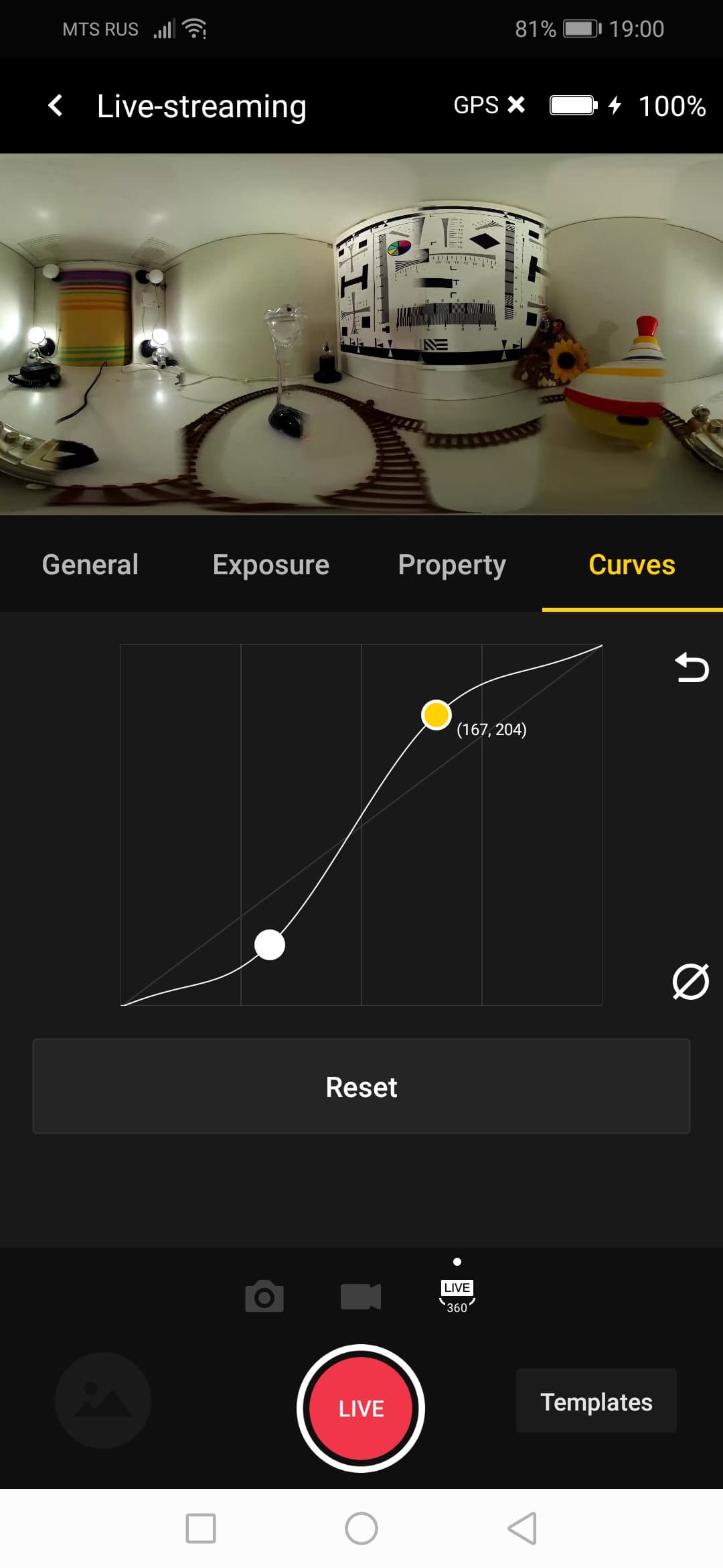 Для съемки в условиях сложносоставной освещенности (солнце или окна с одной стороны и тень с другой) можно применить «хитрый» режим, который называется Изолированной экспозицией. При активации этой функции каждый объектив работает как самостоятельная камера с индивидуальными настройками экспозиции. В результате такой съемки запишется шесть картинок, экспонированных с разными уровнями, что практически гарантирует отсутствие пересвеченности или слишком темных областей у всех объективов. Впоследствии, при сшивке панорамы в программе Mistika VR, разница в яркости и цвете будет устранена.