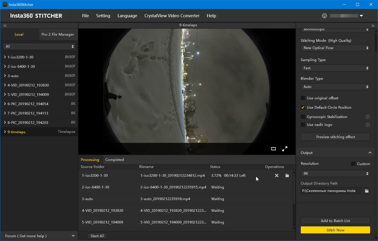 Скорость сшивания панорам зависит не только от мощности центрального и графического процессоров, но и от типа склеиваемого контента, а также от формата, в который экспортируется готовый материал. Так, средненький ПК с процессором Intel i7-3970X и видеокартой Nvidia GeForce GTX 780 за 15 минут справляется со склейкой видеопанорамы 8K 60p длительностью 30 секунд при настройках программы по умолчанию. Небыстро, но оно того стоит. Конечно, скорость обработки была бы значительно выше с более мощной видеокартой, например с GTX 1070.
