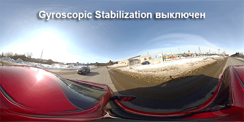 Этот ролик был собран из двух, снятых поочередно с выключенным и включенным пунктом Gyro. Как видим, степень тряски одинакова в обоих случаях. А разница — лишь в наклоне камеры и направлении взгляда ее объективов, хоть мы и старались удерживать камеру в одинаковом положении. Однако, оказывается, дважды гонять автомобиль не имело никакого смысла. Все, что требуется для получения «стабилизированного» панорамного ролика — это включить флажок Gyroscopic Stabilization в фирменной программе, которая сшивает снятое видео.