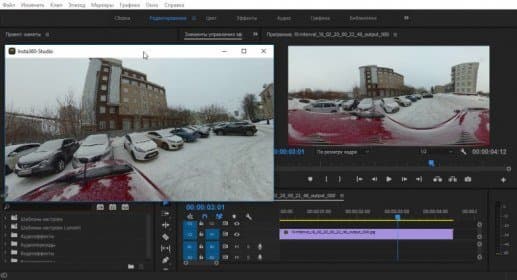 Между прочим, Premiere Pro мы упомянули не зря. Разработчик Insta360 Pro создал даже специальный плагин для этой программы монтажа. Активированный плагин создает дополнительное масштабируемое окно, в котором отображается обрабатываемое видео. И не просто отображается. Здесь видео можно повернуть в любую сторону, как это делается на YouTube и в каждом панорамном плеере.