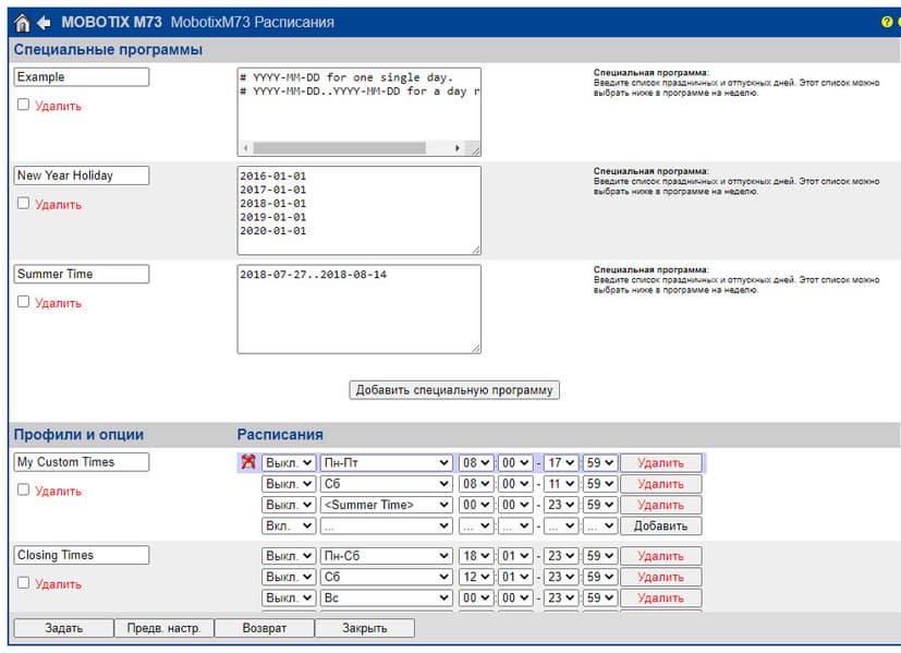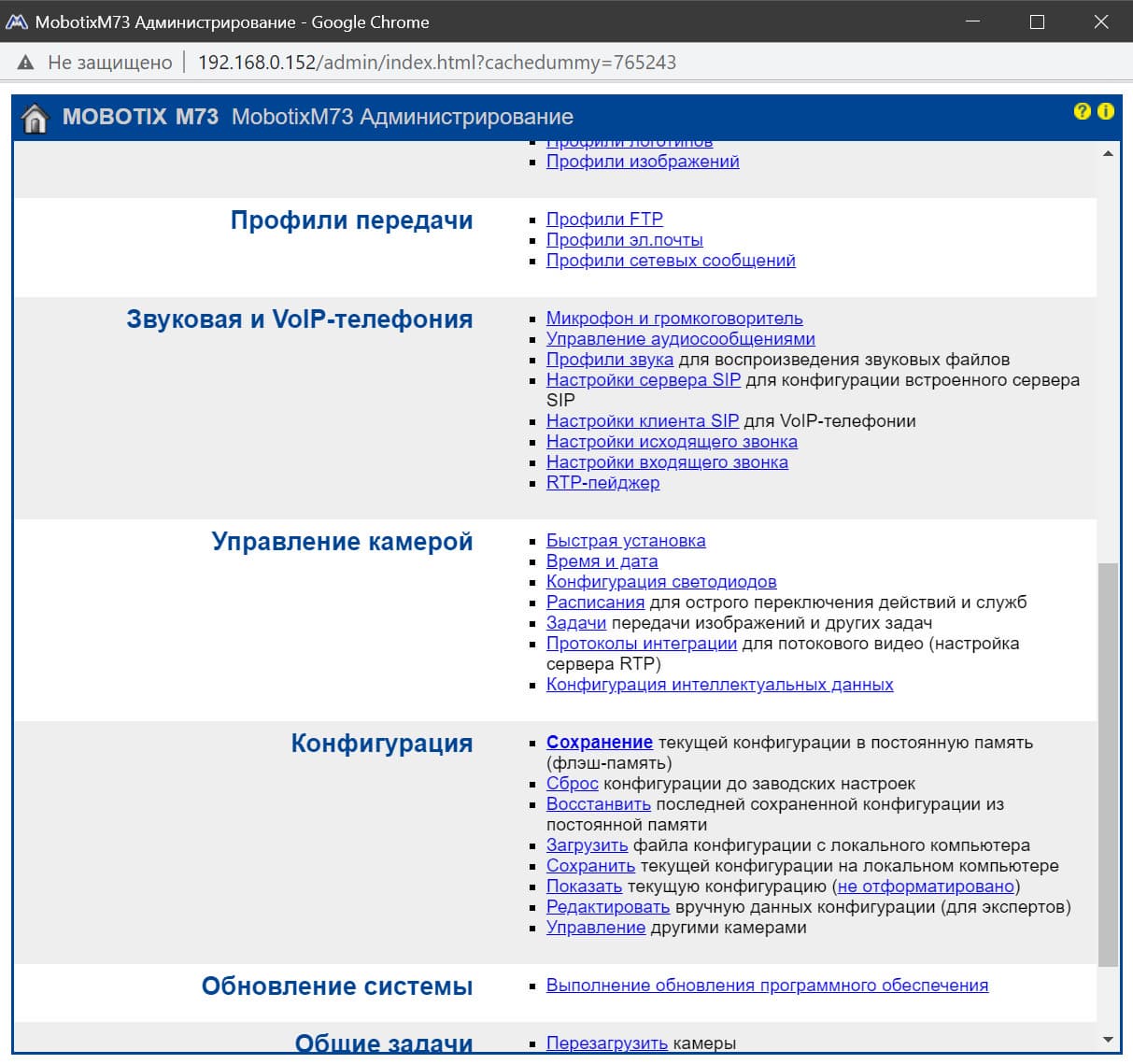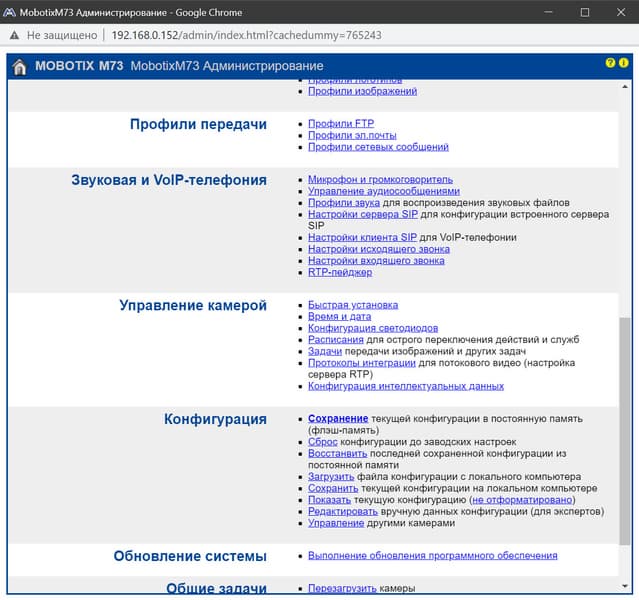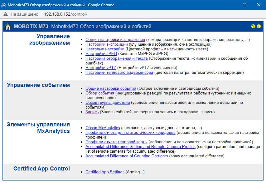 Как уже говорилось, камера не предназначена для широких масс, а значит, программ и интерфейсов с «интуитивно понятными» настройками нечего и ожидать. Более того: политика Mobotix изначально не предусматривает послаблений пользователям. Такая «жестокость» заключается в практическом отсутствии внятных и доступных мануалов, учебной литературы и тем более программных мастеров настройки со структурой «шаг за шагом». Подразумевается, что пользователь либо проходит специальные курсы Mobotix, либо добивается результата своими мозгами.