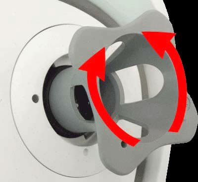 Кстати, отметим важную деталь: оптический модуль (на фото справа) позволяется отрегулировать. Имеется в виду фокусировка. Будучи фиксированной и сфокусированной на заводе Mobotix под конкретное расстояние до объекта наблюдения (в зависимости от фокусного расстояния), она нуждается в точной подгонке по месту установки камеры. Настройка фокусировки производится с помощью специального пластикового ключа (формально нужно 2 ключа — синий, чтобы снять защитное стекло и красный / серый, чтобы вращать объектив).