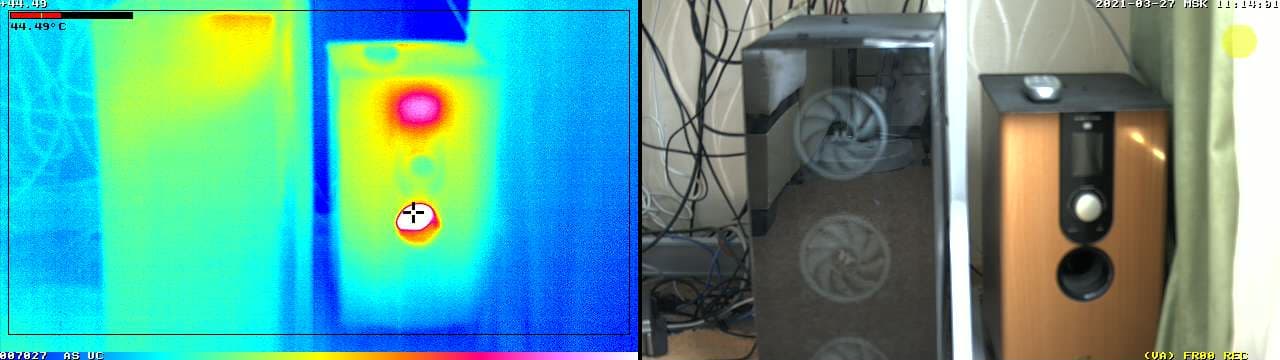И неужели температура печной трубы достигает 136 °C, а внутренности обычного сабвуфера нагреваются до 45 °C? Но ведь камера не обманывает.