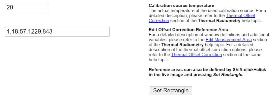 Для того, чтобы повысить точность, в настройках тепловой радиометрии имеется функция коррекции — Thermal Offset Correction. Работает она так: положим, у нас имеется объект, температура которого известна с высокой точностью. Этот объект — так называемое «черное тело» (физическое тело, которое при любой температуре поглощает всё падающее на него электромагнитное излучение во всех диапазонах) — будет работать в качестве исходного, от которого камера может отталкиваться, определяя температуру в основном окне контроля.