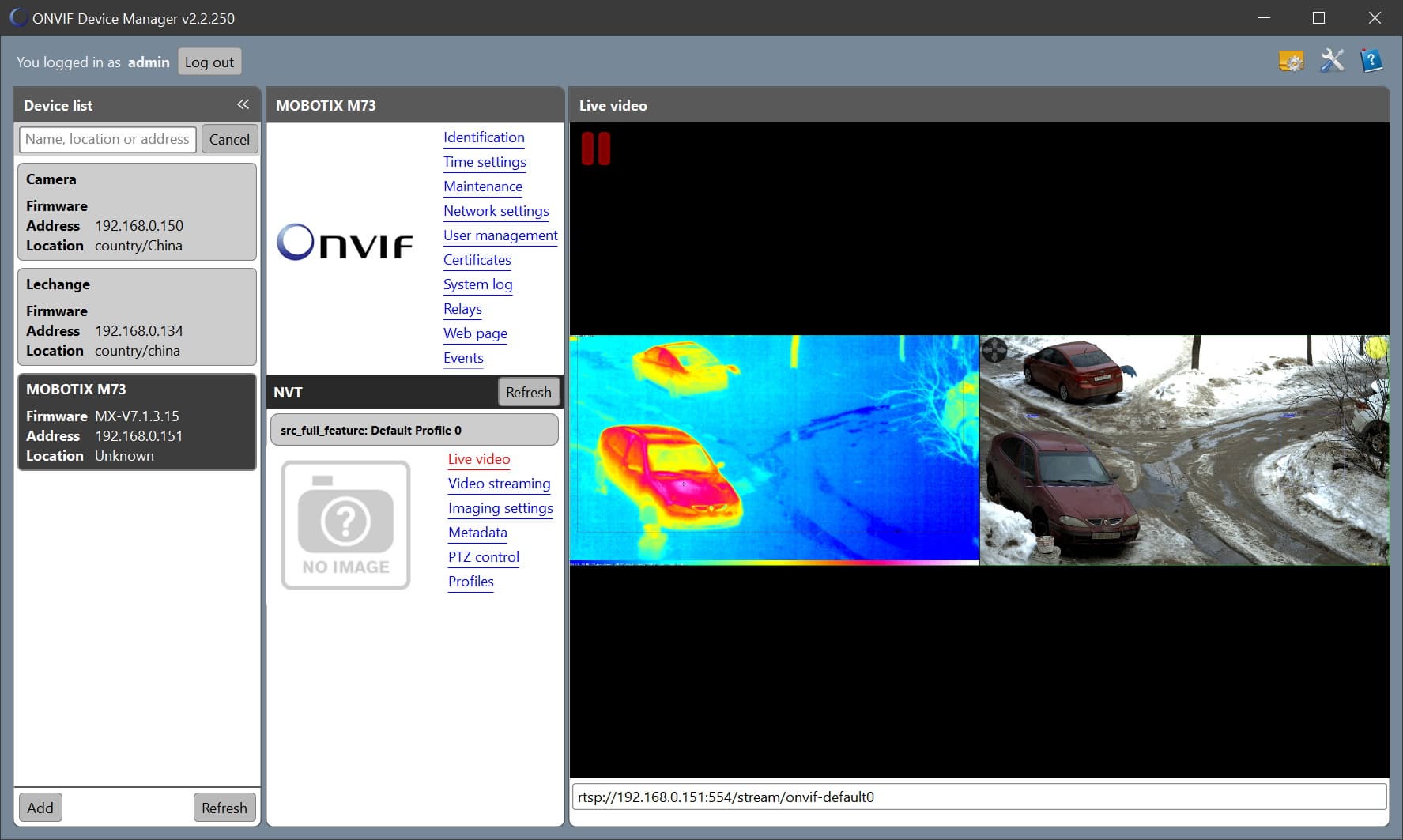 Теперь камера способна интегрироваться в абсолютно любую существующую или проектируемую систему. Это выражается в ее доступности для любых программных и аппаратных комплексов, которые работают с RTSP-видеопотоками. Так, при переключении в режим ONVIF наш аппарат мгновенно определился в локальной сети как обычная IP-камера.