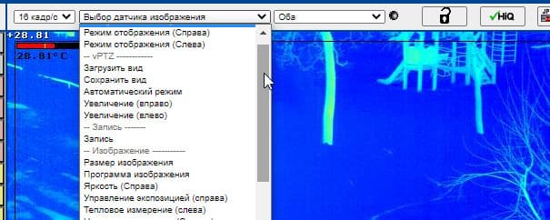 Режим отображения, размер кадра и другие многочисленные параметры видео регулируются в выпадающих меню, расположенных в верхней панели инструментов. Можно вывести сразу два видеопотока либо выбрать один из них.