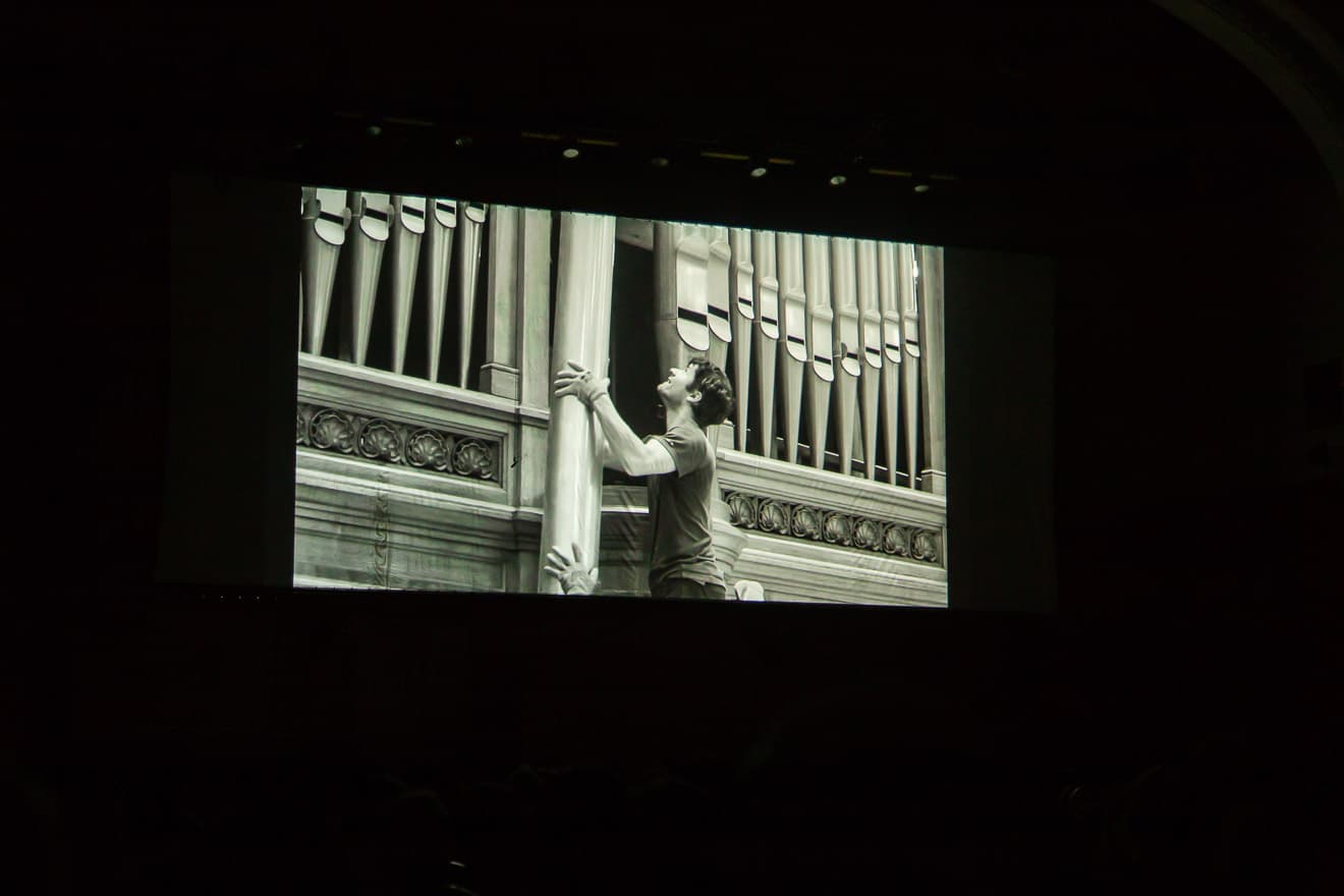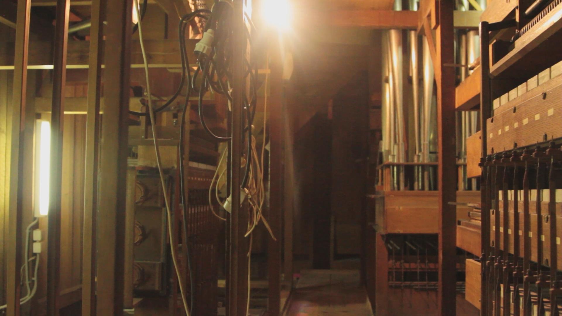 Правда, в орга́не было свое освещение — неоновые лампы с холодным белым светом, а также переносные лампы с теплым светом. Их, кстати, мы использовали в некоторых эпизодах: игру света на трубах орга́на можно увидеть в трейлере (см. ниже). Но такой способ работал только со статичными и крупными планами. А при съемке больших пространств приходилось рассчитывать только на сенсор камеры.