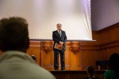 Чтобы избежать проблем с шумами от одежды, вторая петличка крепилась к камере и на всякий случай писала дублирующую дорогу. Звук получался чистый и хороший, хотя и одноканальный. Для решения имеющихся задач этого было вполне достаточно. Я понимал с профессиональной точки зрения, что такой ценный звук должен писаться на два микрофона, закрепленных на спикера, и на два источника, один из которых камера. Однако для реализации такой схемы нужны были две радиопетлички, которых у нас не было, как не было и времени на эксперименты с их надежностью и временем автономной работы.