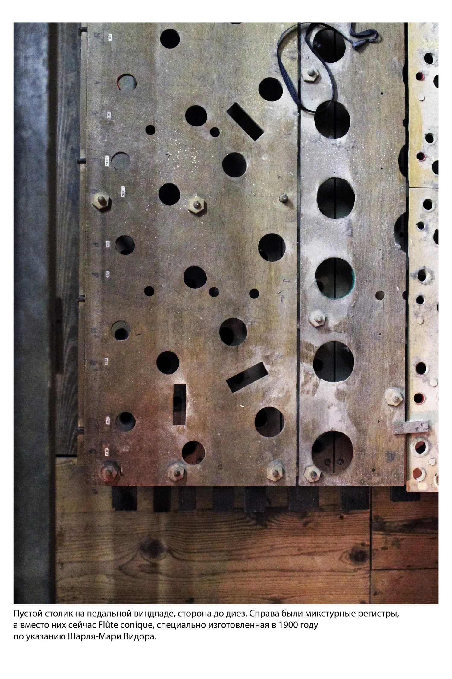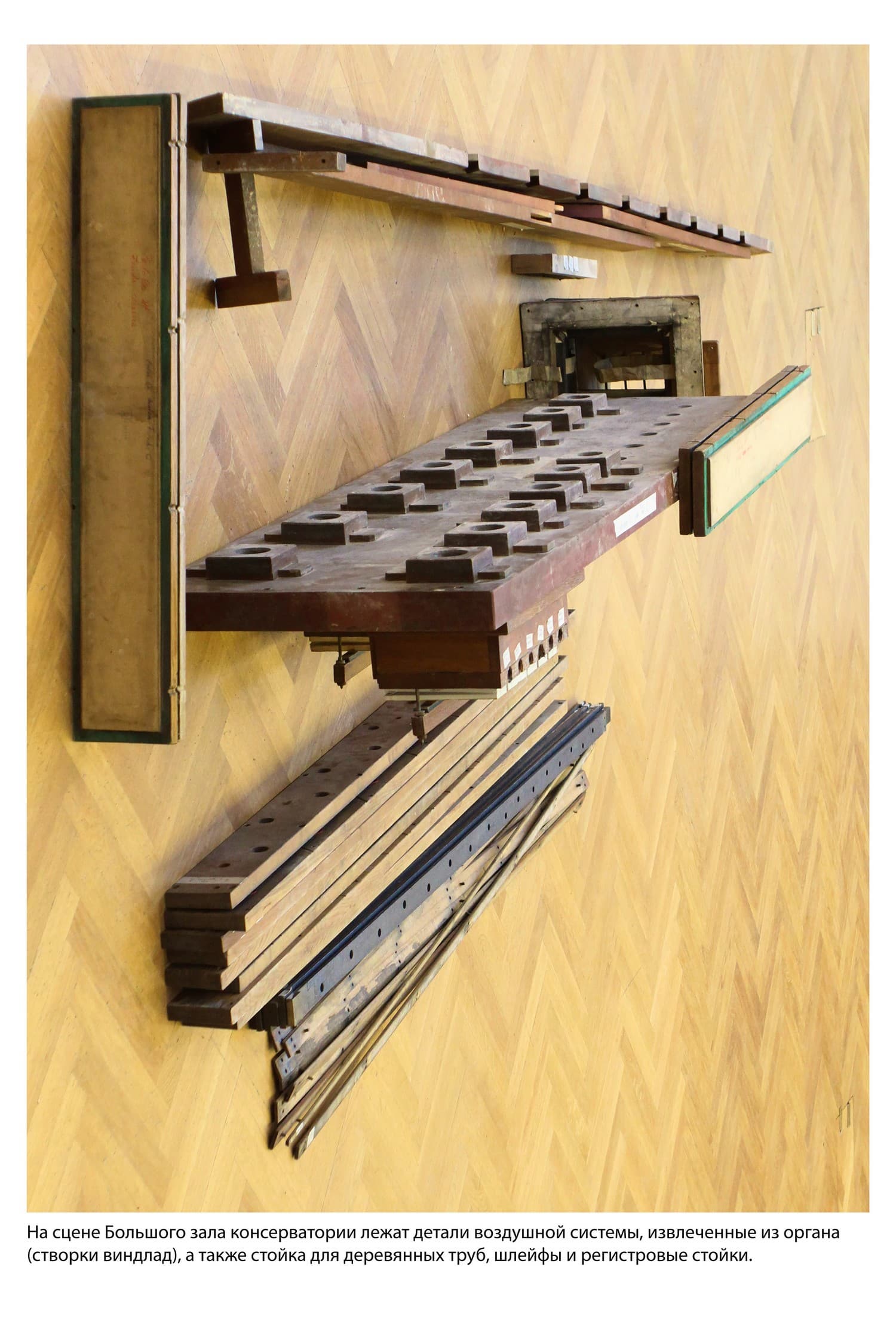 Комментарий Сергея Уварова: Задача фотопроекта — не просто показать «бэкстейдж». Из множества снимков я отобрал те, что выражают сам дух фильма; в них есть стремление увидеть новую, неожиданную красоту в том, что, казалось бы, лишено ее по определению. Детали орга́на, хаотично сваленные на сцену Большого зала, внезапно оказываются здесь чем-то вроде супрематической композиции Малевича или проунов Эль Лисицкого; старые, «с корнем» выдернутые свинцовые трубки (кондукты) — таинственным лесом... Что, однако, не отменяет информативности этих снимков, подчеркнутой нарочито специальными комментариями органного мастера.