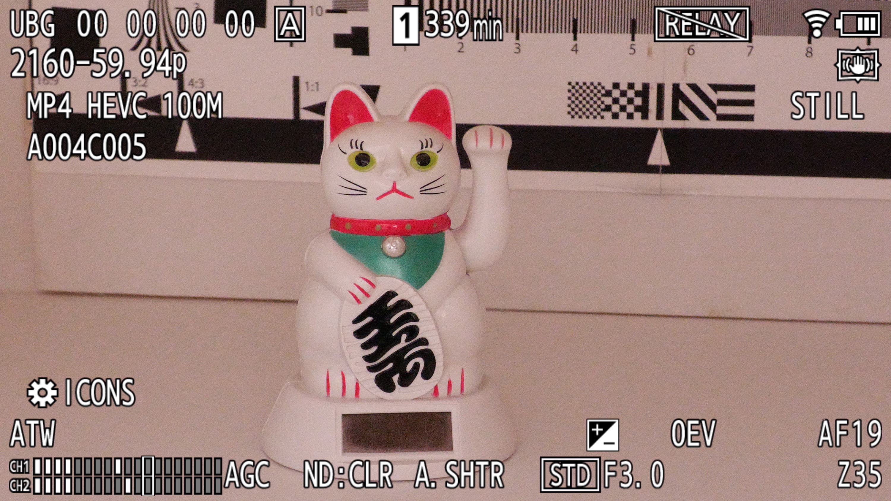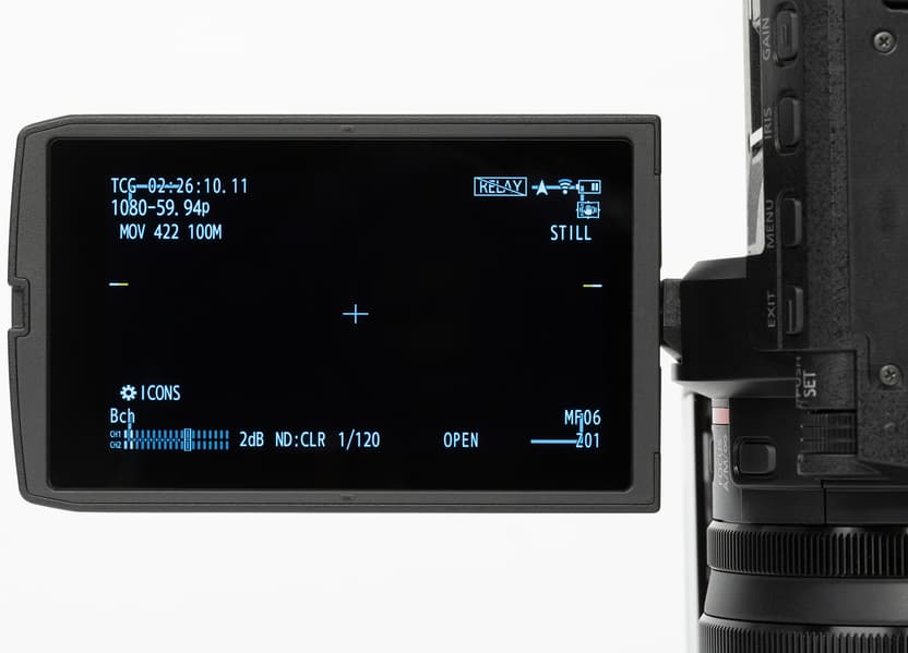 После включения питания камера готова к работе через 3 секунды, это неплохо для репортажного камкордера. Программное обеспечение аппарата построено с учетом профессионального использования. На видеовыходы камеры может транслироваться как чистый сигнал, так и видео вместе с информационным наполнением.