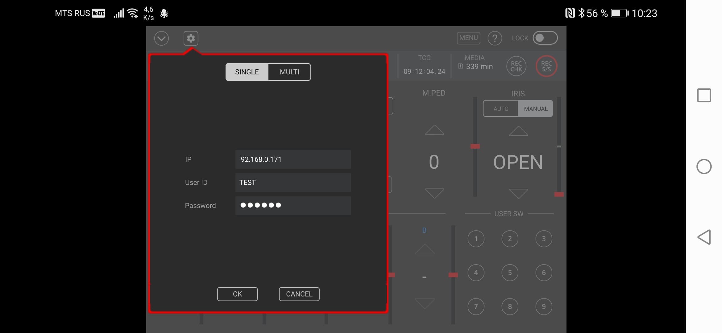 Для прямого управления камерой посредством беспроводной сети используется приложение HC ROP (версия для Android, версия для iOS). Программа представляет собой панель управления, интерфейс которой всегда имеет альбомную ориентацию и явно рассчитан на планшеты с большой диагональю. На смартфоне разглядеть органы управления и тем более задействовать их чрезвычайно непросто.