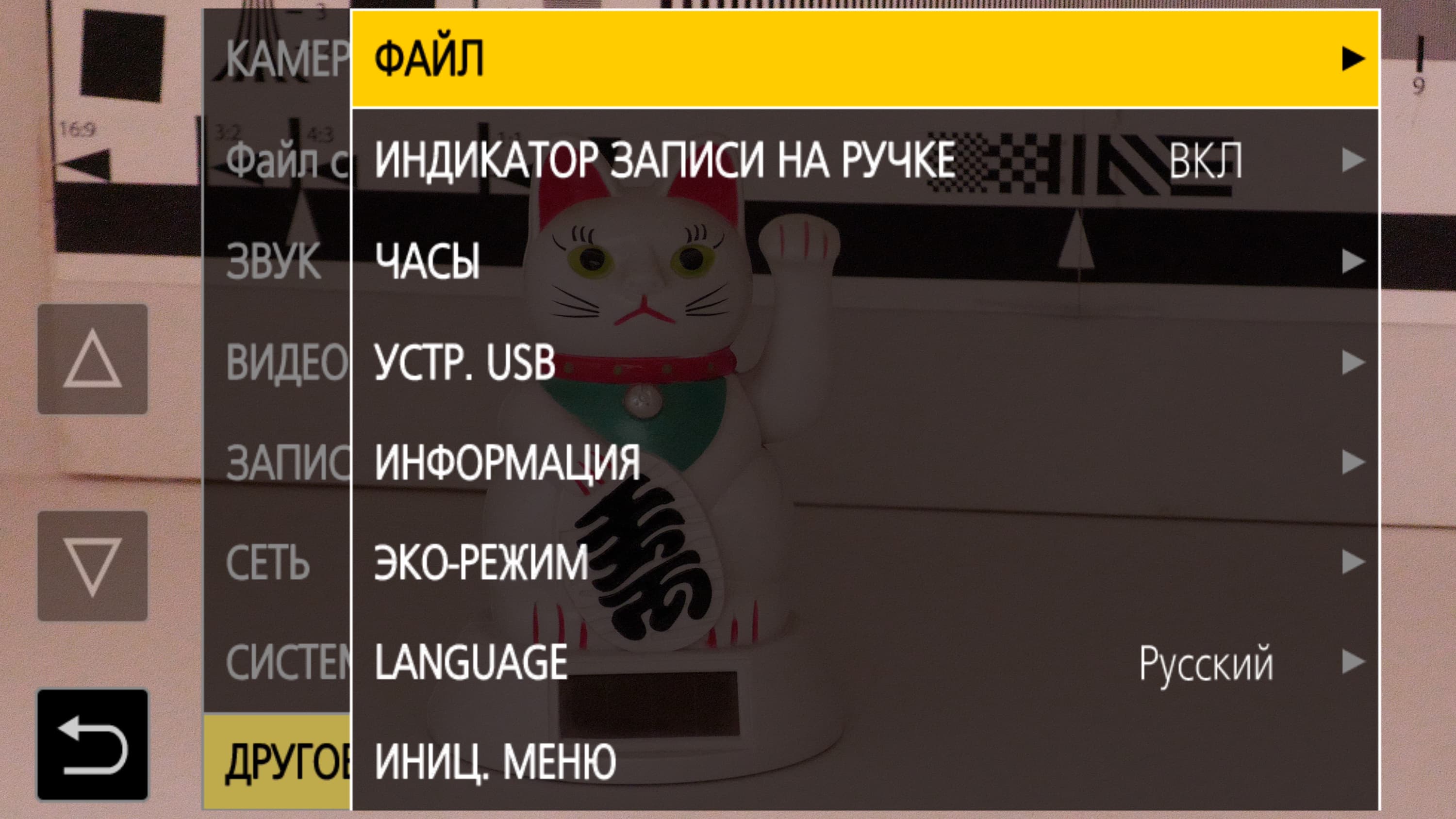 Дополнительное настроечное колесико с функцией нажатия находится в нижней части корпуса, ближе к объективу. Им удобно вызывать меню, выводить на дисплей пользовательские кнопки или производить настройки непосредственно во время записи.
