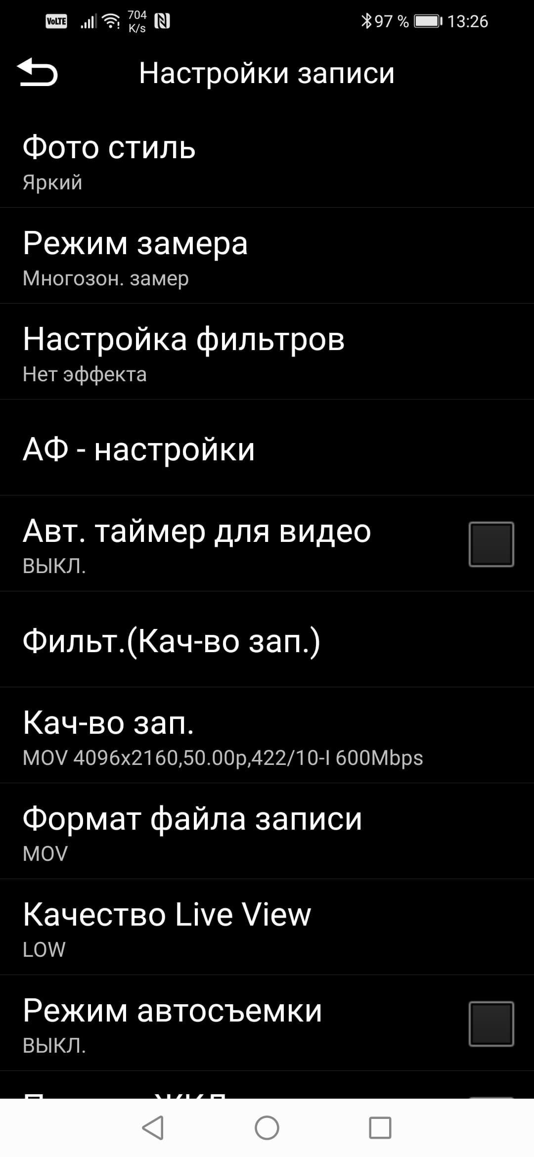 После включения аппарат готов к записи почти мгновенно, никакой долгой загрузки встроенного ПО не наблюдается. Меню настроек содержит огромное количество страниц, один только видеораздел состоит из семи подразделов. Кстати, два из них посвящены настройкам звука.