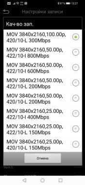 Скоростная видеозапись в камере реализована посредством создания файлов с увеличенной частотой кадров. В 4K доступна частота 100, а в Full HD — 200 и 100 кадров в секунду.