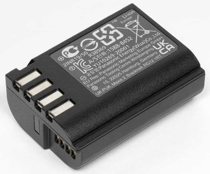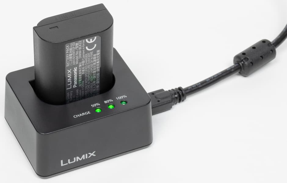 Аппарат комплектуется литий-ионным 7,2-вольтовым аккумулятором DMW-BLK22 емкостью 2200 мА·ч. Его подзарядку можно производить как в док-станции, так и внутри камеры, используя вход USB Type C.