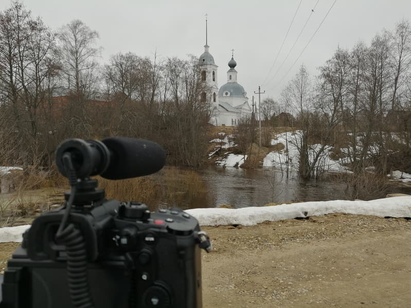 А дело вот в чем: при съемке скромного пейзажа стояла довольно тихая погода, ветерок лениво шевелил ветки. Однако в «родном» звуке оказалось такое количество ветра, что иных звуков природы не было слышно вовсе. Определить это помогли прихваченные на пленэр наушники закрытого типа (повторяем, задачи изучать звук не имелось). По всей видимости, камера была установлена под таким углом к слабому ветерку, что микрофоны уловили поток воздуха слишком эффективно.