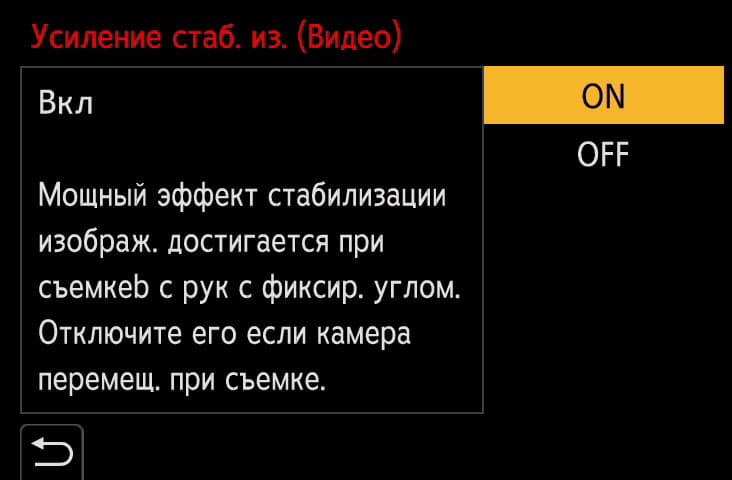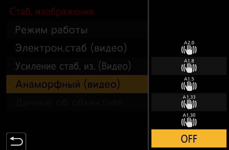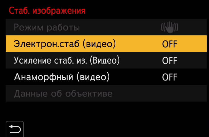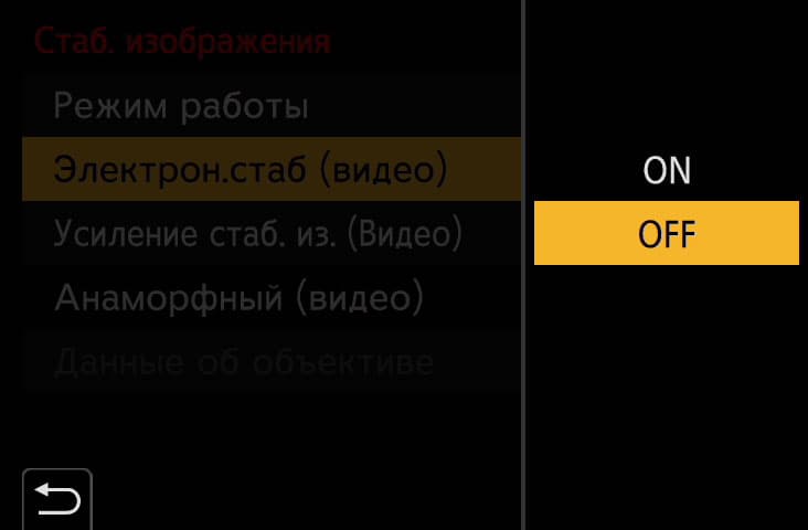 Первый тип стабилизации (Электронный) компенсирует дрожание камеры во время видеосъемки по вертикальной, горизонтальной, продольной, поперечной осям и оси рыскания за счет одновременного использования стабилизатора в объективе, в корпусе и электронного стабилизатора изображения. Второй тип стабилизации рекомендуется использовать в случае выполнения записи с фиксированного ракурса. Наконец, третий способ стабилизации, анаморфный, который имеет пять степеней усиления, предназначен для использования при съемке в анаморфном формате (4:3). Вывод: в обычной съемке, когда оператор находится в движении, а не стоит на месте, и при условии, что съемка ведется с нормальным размером кадра (16:9), второй и третий стабилизаторы оказываются невостребованными.