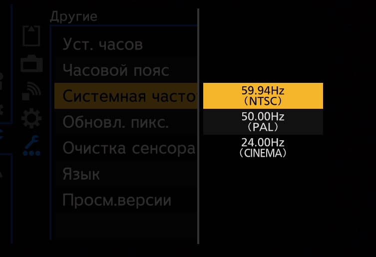 Настройки камеры позволяют переключать системную частоту с PAL на NTSC.