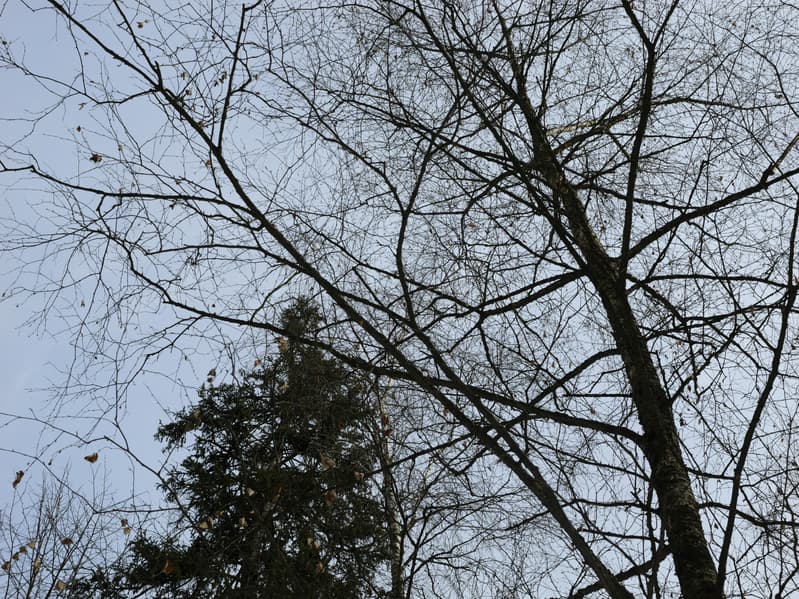 Столь высокая разрешающая способность камеры в натуральной съемке выражается в сохранении самых мелких деталей. Таких мелких, что глазом они обычно не определяются. К примеру, ветки деревьев. Много веток.