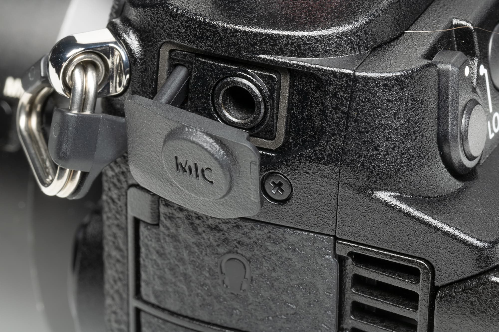 Камера оснащена разъемом для подключения пульта ДУ и микрофонным входом (стандартный миниджек 3,5 мм).