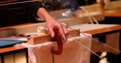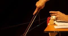 Вторая сцена — ночью в рабочем кабинете композитора (правда, автора не этого произведения, а другого, тоже звучащего в фильме) — снималась в еще более сложных условиях. Единственным источником света была настольная лампа. С балансом белого в данном случае было гораздо проще, а вот с шумами — сложнее. Тем не менее, и здесь камера показала себя прекрасно. Шумы на таких высоких ISO, разумеется, есть, и немаленькие, но камере удается их подавлять программно, и в динамике они не заметны. Более того, порой может создаться впечатление, что это «благородный шум», наложенный на видео специально для «ламповости», как на звукозапись порой накладывают шорох иглы винилового проигрывателя, а на фотографию — имитацию пленочного шума. В любом случае, картинку он не портит, и это главное.