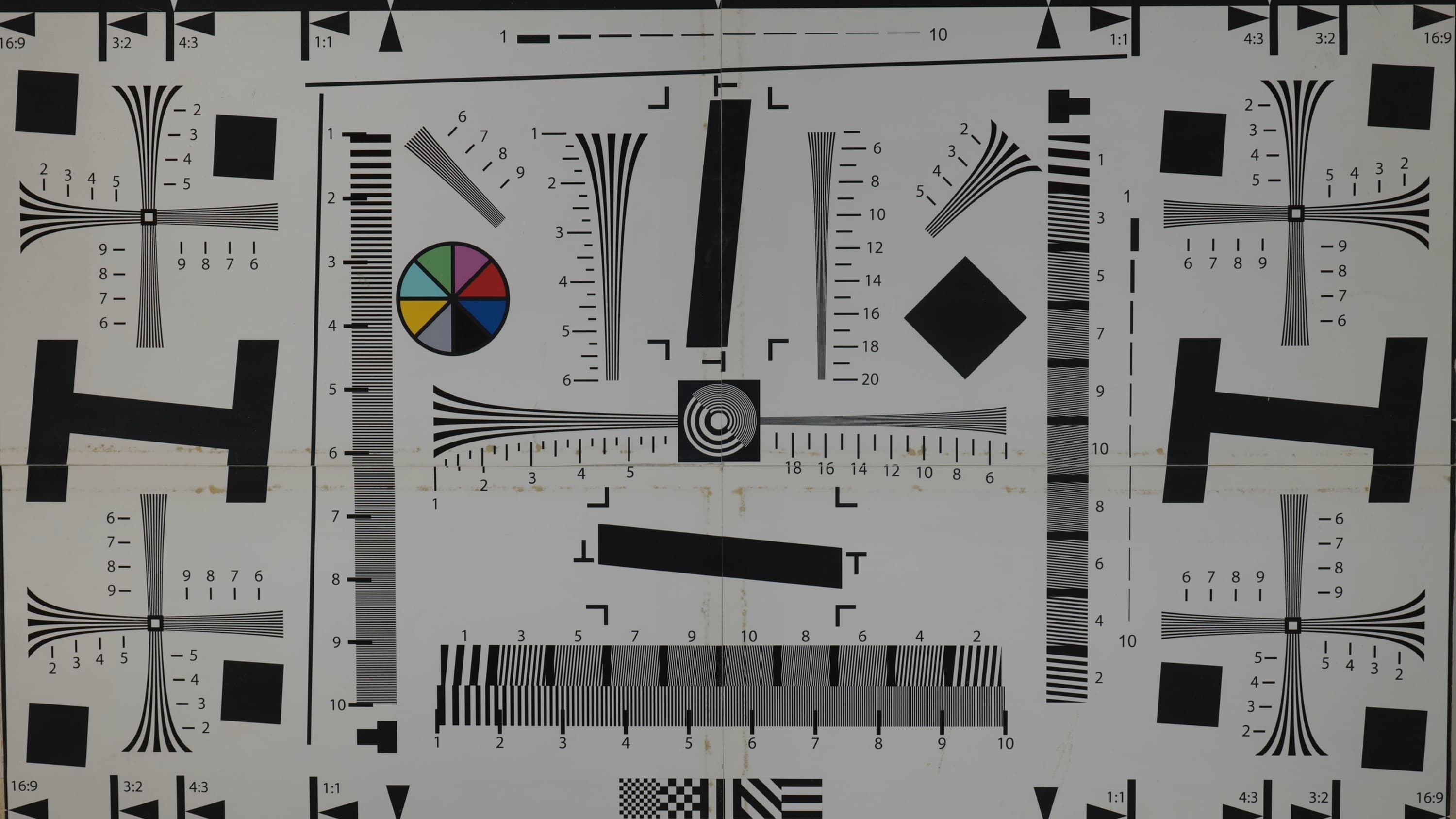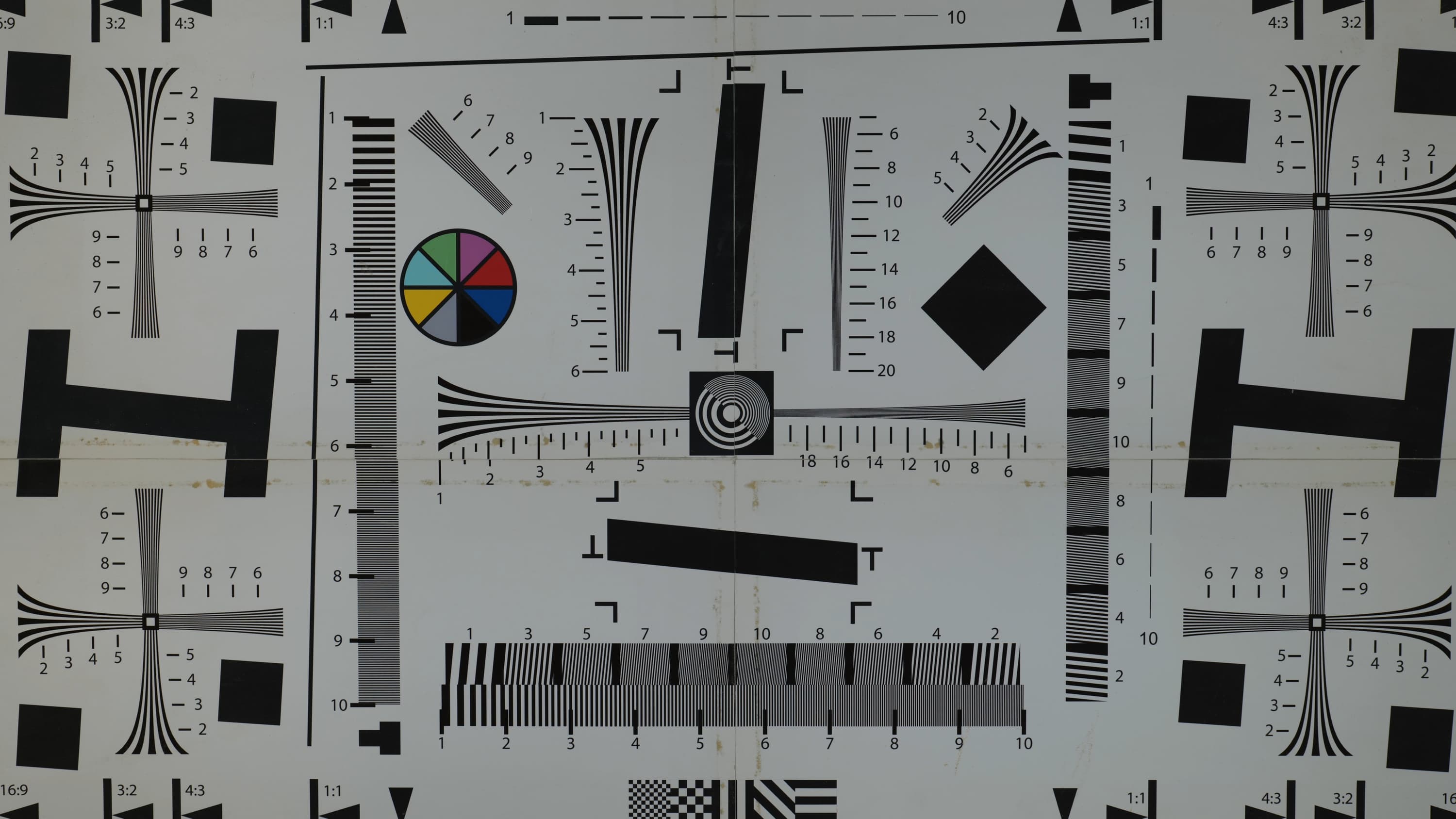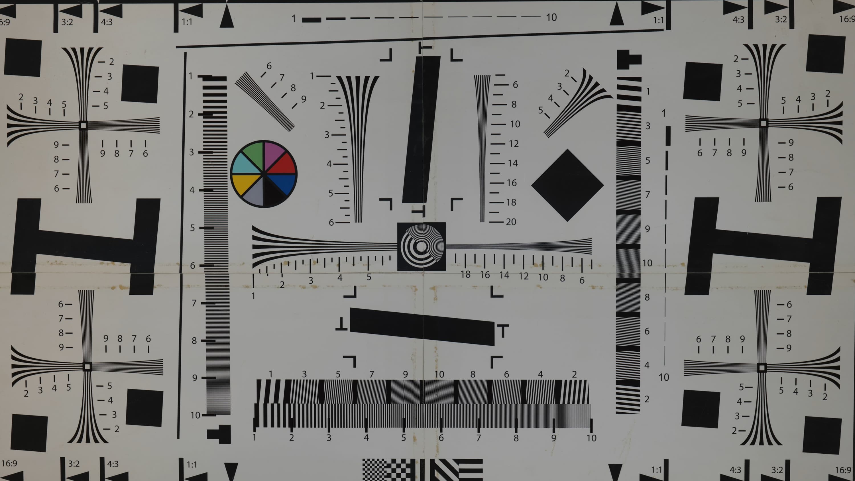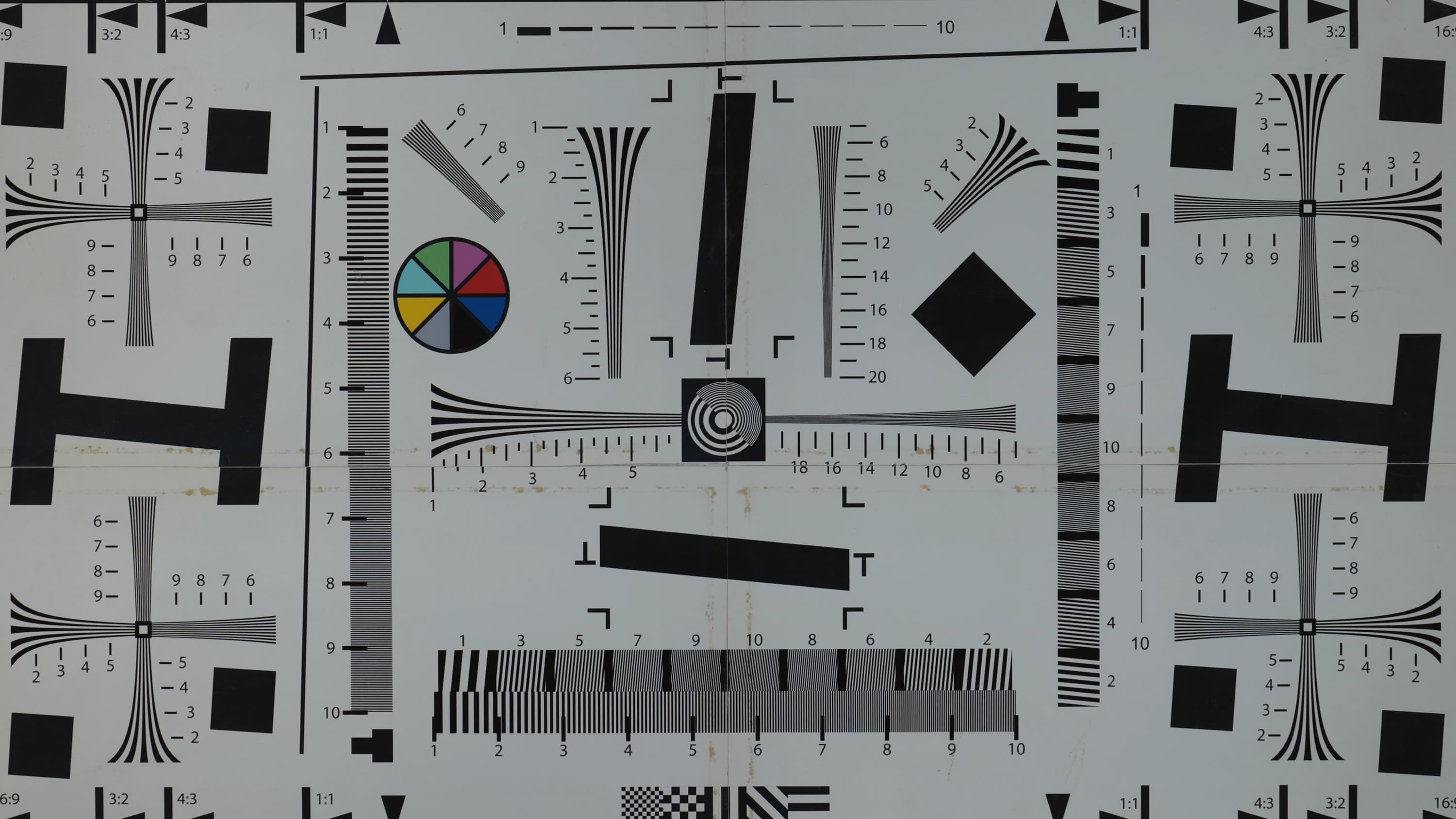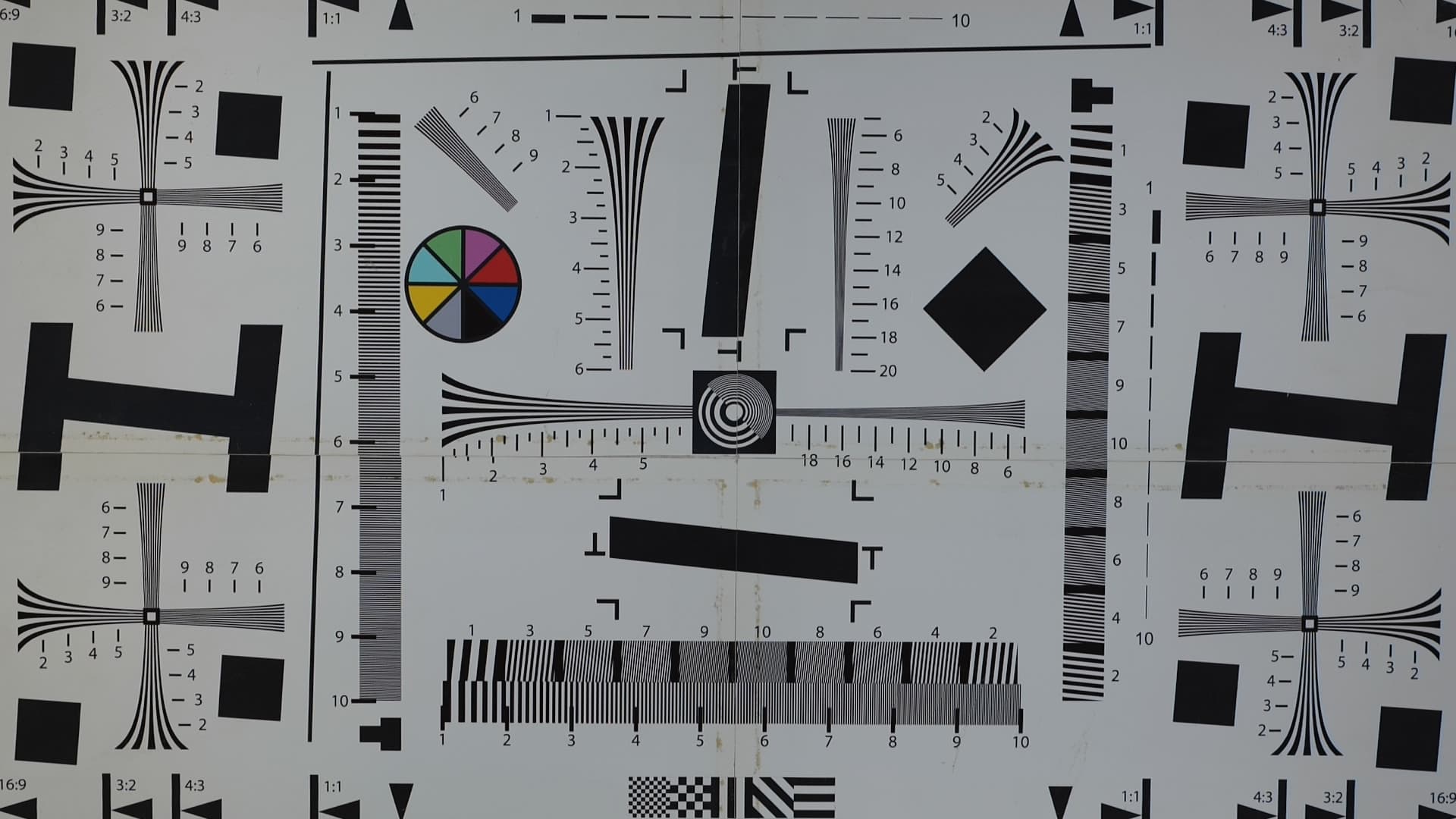 Наконец-то случилось! Эта мира кончилась, несите следующую. За много лет тестирования фото- видеокамер мы не испытывали нужды менять тестовую табличку на схему нового формата, который рассчитан на большее, чем Full HD, разрешение. Тут-то и проявляется разница между разрешением и разрешающей способностью: новые 4K камеры дают в разы большее разрешение, чем Full HD аппараты, однако разрешающая способность, если и увеличилась, то даже не в два раза. Так, примерно полтора, с 1100 ТВ-линий в хороших Full HD камерах до 1600-1700 линий в не менее хороших, но 4K камерах.