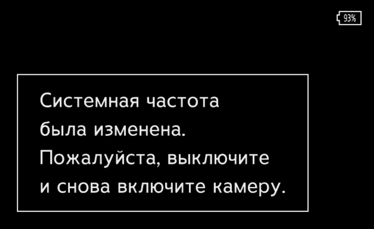 При смене системной частоты (24/50/60) камера нуждается в перезагрузке, поскольку вместе с системной частотой меняются практически все установки записи.