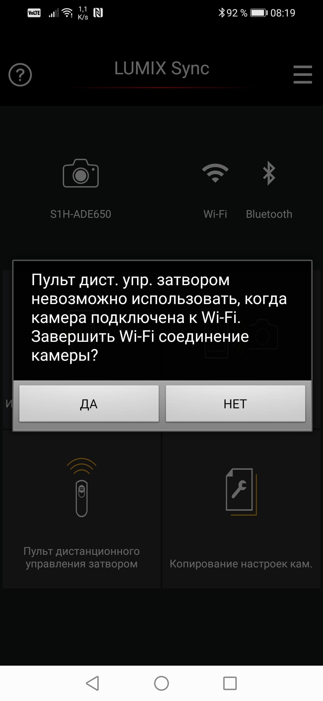 Если во время сеанса Wi-Fi связи нажать какую-либо кнопку камеры или тронуть кольца объектива (кроме зума), то управление по Wi-Fi блокируется на 10 секунд. Но это легко отключить, сменив в настройках приоритет смартфону.