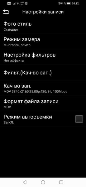 Многие параметры съемки можно изменить непосредственно во время записи. Также в приложении доступны дополнительные настройки, они хранятся в отдельном меню. Конечно, сравнивать параметры, имеющиеся в мобильном приложении, с обилием настроек программного обеспечения самой камеры — невозможно. Но это и понятно. Мобильное приложение — это всего лишь инструмент оперативного контроля записи, не более.