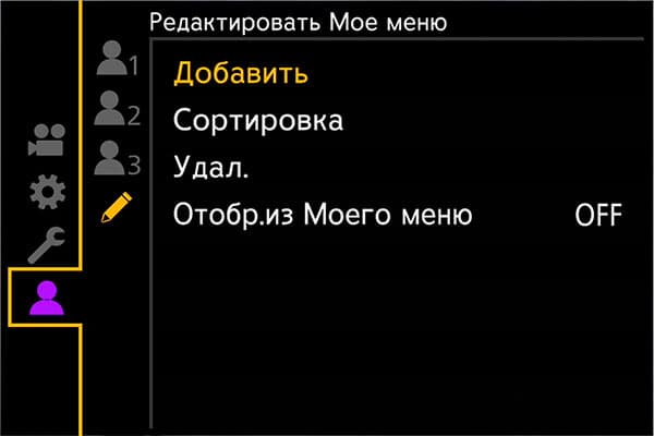 Наконец, последний раздел настроек посвящен созданию шаблонов управления Мое меню. В это меню разрешается включить любой параметр, который конкретный пользователь вызывает наиболее часто.