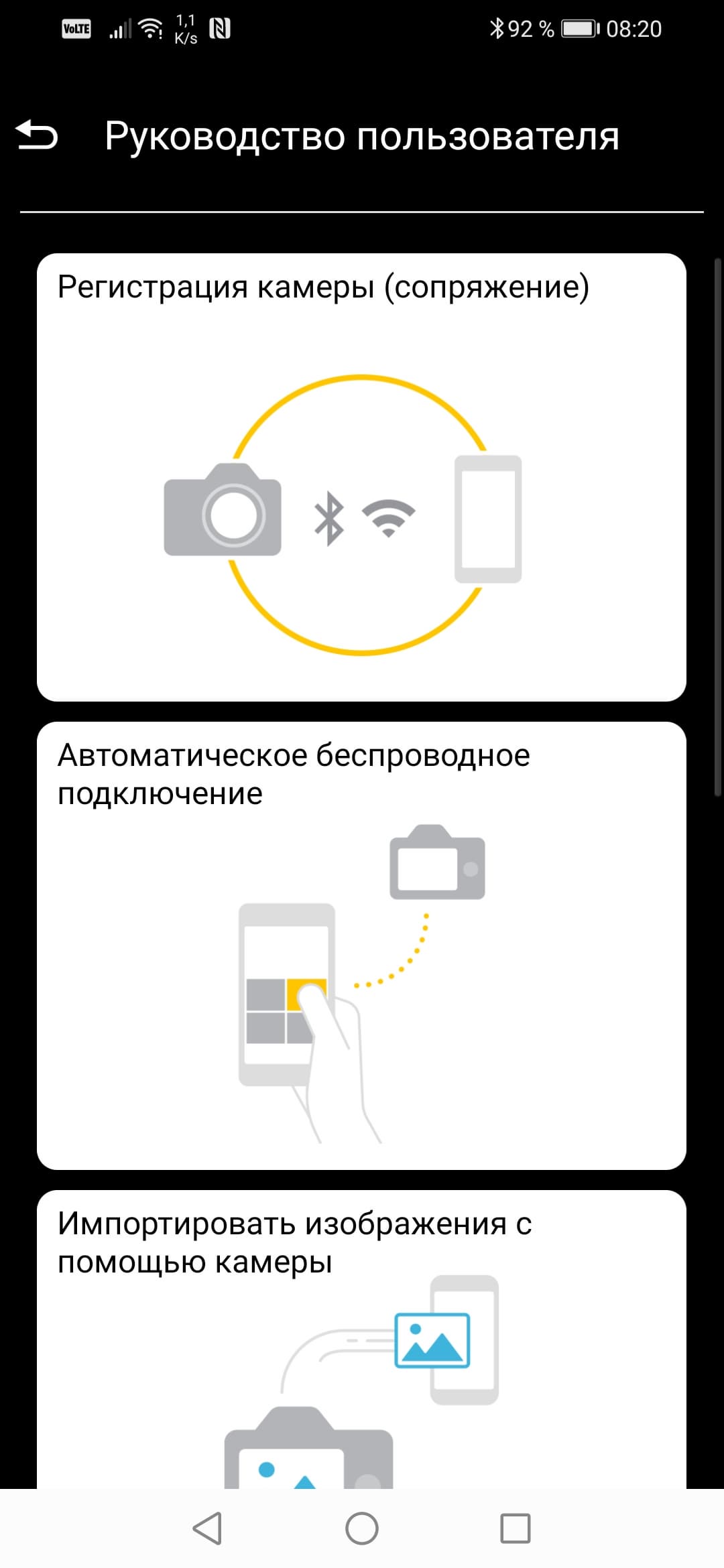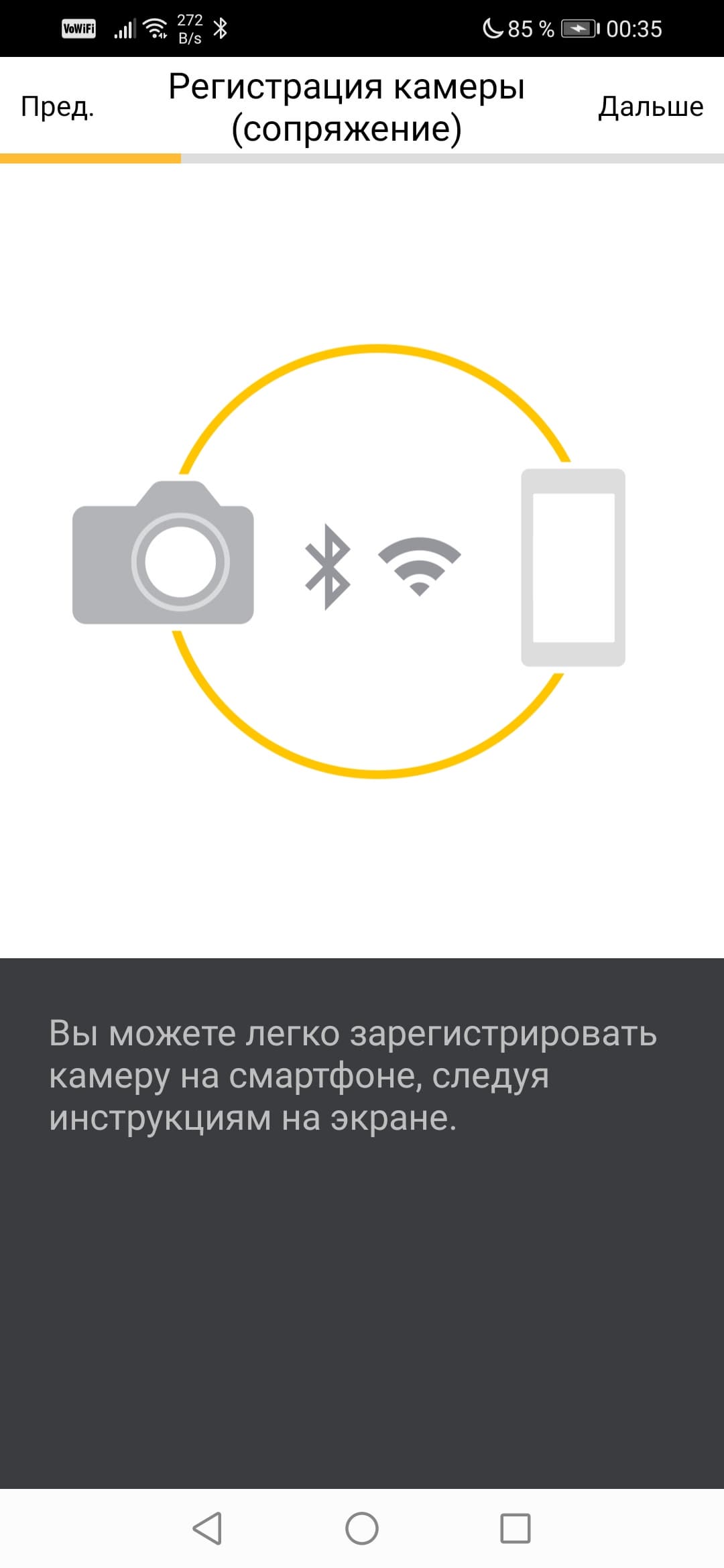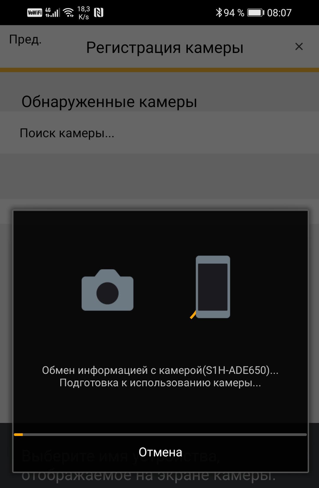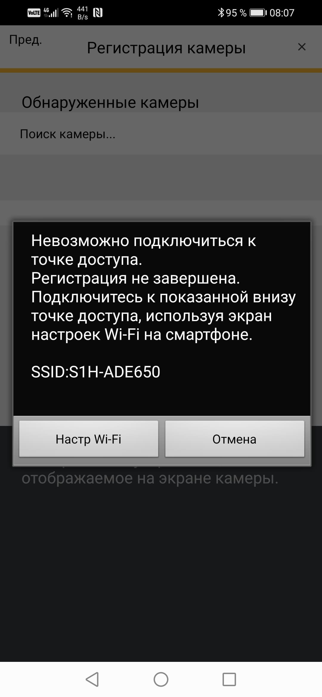 Неясно, в чем тут проблема. Возможно, версия Bluetooth на нашем смартфоне недостаточно продвинутая. Но не беда, есть и другой способ: можно принудительно активировать Wi-Fi точку камеры и вручную подключить к ней смартфон, после чего запущенное приложение самостоятельно зарегистрирует камеру.