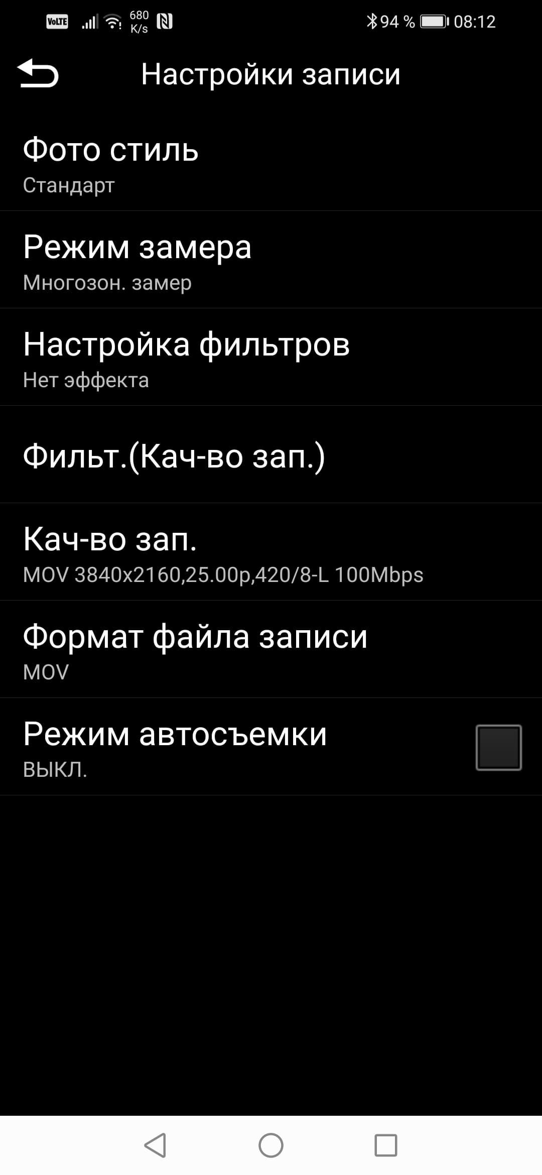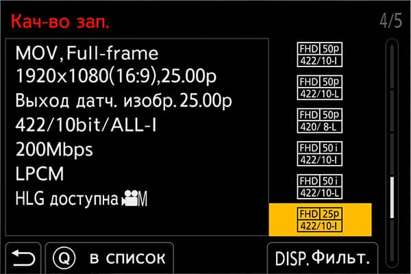 Единственный параметр, который при выборе того или иного формата устанавливается автоматически и не может быть изменен — это уровень битрейта. так, при съемке в AVCHD 1080 50p его уровень составляет 26 Мбит/с, в MP4 4K 50p — 100 Мбит/с, а максимальным битрейтом в 400 (!) Мбит/с обеспечивается съемка в формате 4K 25p 4:2:2 10 bit.