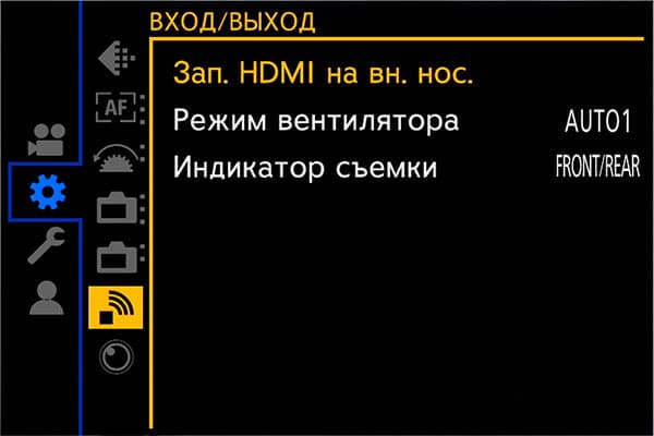 Видеосигнал, поступающий с HDMI-выхода аппарата, может содержать графическое наполнение (контроль за процессом записи) либо не иметь его вовсе (съемка с записью на внешний рекордер). Кстати, с этого выхода можно получить RAW-данные и сохранить их в Apple ProRes при использовании внешних рекордеров. например, Atomos Ninja V 4K HDR.