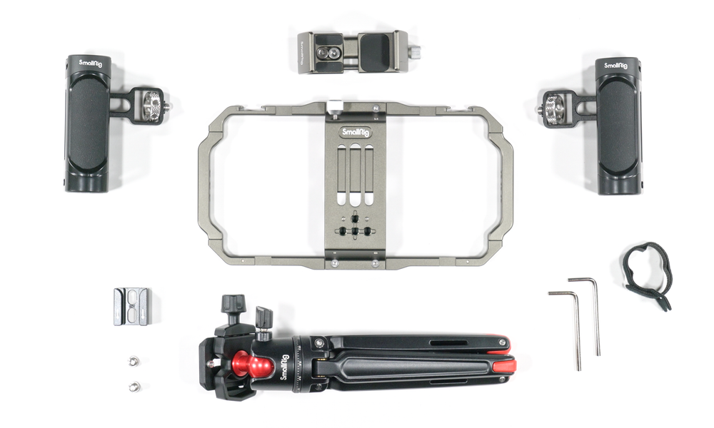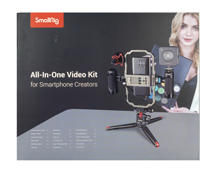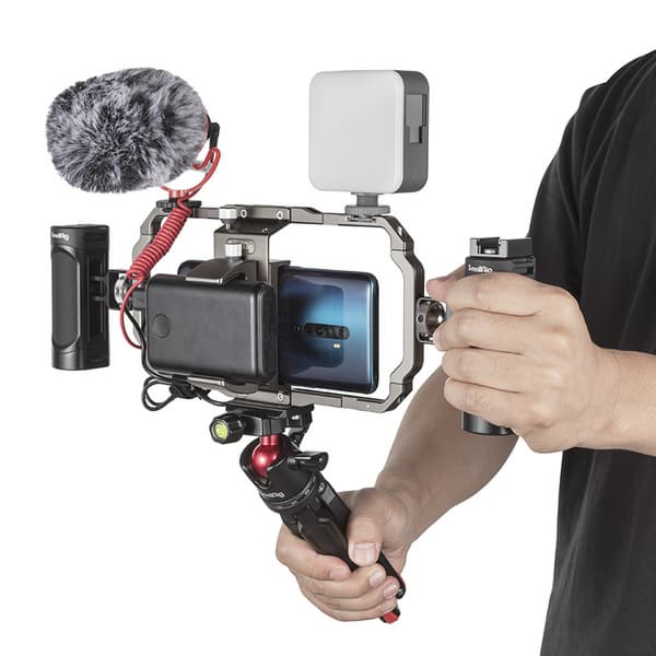 Влогеры и стримеры, использующие смартфоны, начинают обычно с традиционных подручных средств: селфи-стиков, мини-штативов и прочего в таком роде. Однако по мере приобретения опыта их требования к функциональности оборудования возрастают, вызревает необходимость приобрести внешний микрофон и осветитель и смонтировать все это в одном блоке вместе с основным мобильным устройством. На данном этапе пригодится набор принадлежностей SmallRig All in One Video Kit 3384, включающий практически всё, что необходимо для записи и трансляции видео с помощью смартфона.