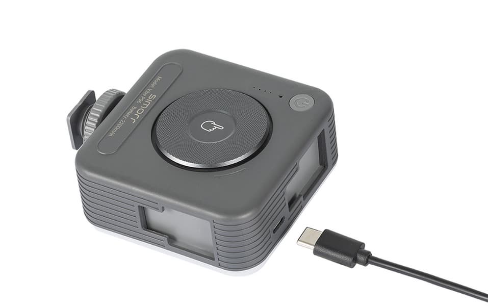 Зарядка аккумулятора производится посредством подключения осветителя кабелем USB Type С (входит в комплект поставки) к пауэрбанку или сетевому адаптеру (приобретаются отдельно).